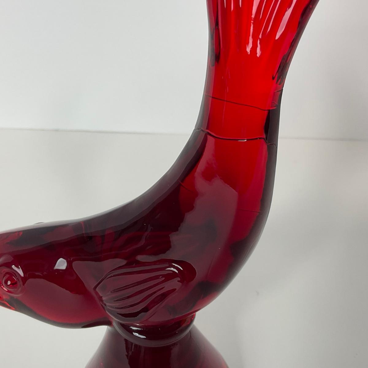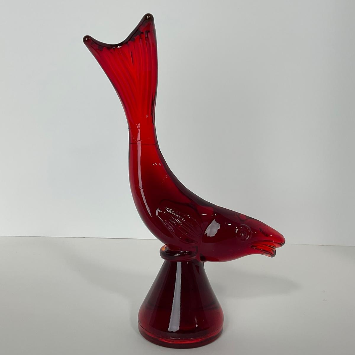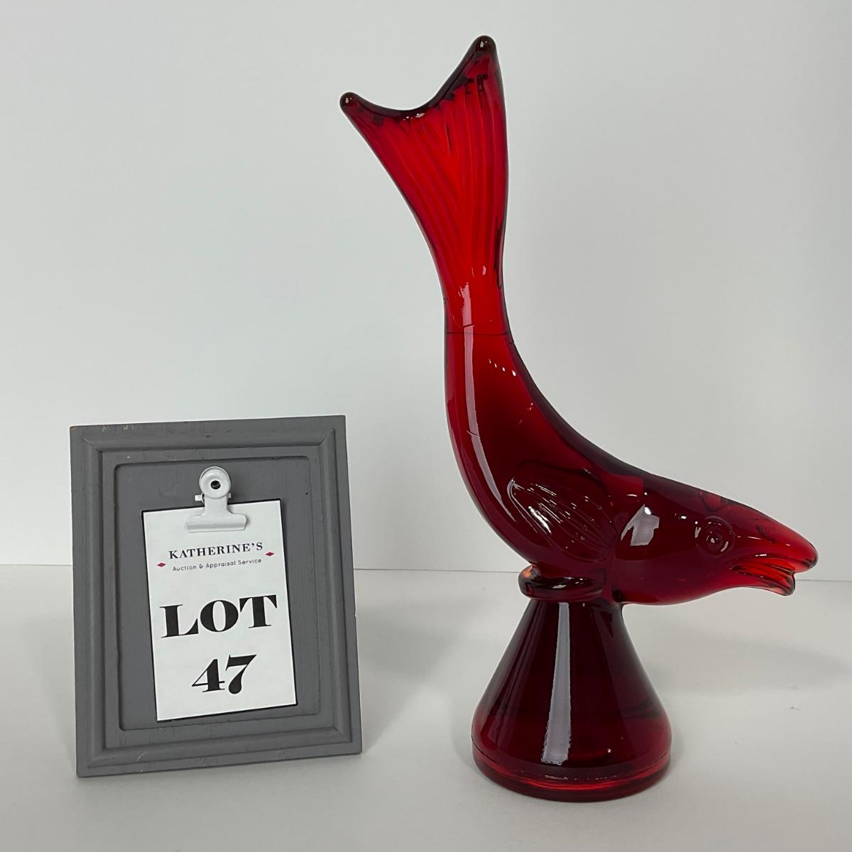 One Viking Epic ruby red trout figure does have a few mold marks. 9 1/2 inches tall. This piece has no damage, and appears to be in great shape with no visable chips, cracks, or broken pieces. Please see photos for details and condition. Any condition statement is given as a courtesy to a client, is an opinion, and should not be treated as a statement of fact. Reference to condition written, oral or within a condition report shall not be regarded as a full account of condition and may not include all defects, alterations, or restorations. Absence of a condition report does not imply a lot is flawless or lacking imperfections or damage. Katherine’s Auction & Appraisal Service shall have no responsibility for any error or omission. Returns shall not be accepted on the basis of condition. ::: Shipping is available on this lot. If you require shipping you must let us know at the close of the auction. We will coordinate with you after the item has been won. Shipping fees will include insurance up to or exceeding the value of all items being mailed. If you have any questions regarding this lot please contact the auctioneer either via this website, by direct email or by phone. PICK UP TIMES and other important information can be found in the TERMS and DESCRIPTION of the auction. Please take a look for pertinent information. Thanks!
