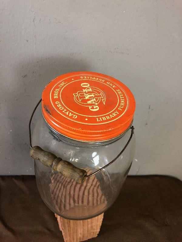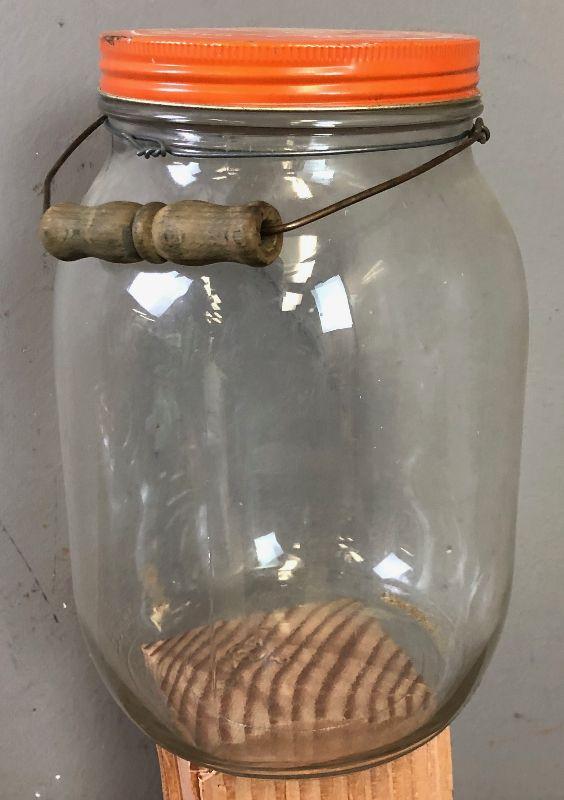 #47 Vintage Orange-Lidded-wood-handle Jar