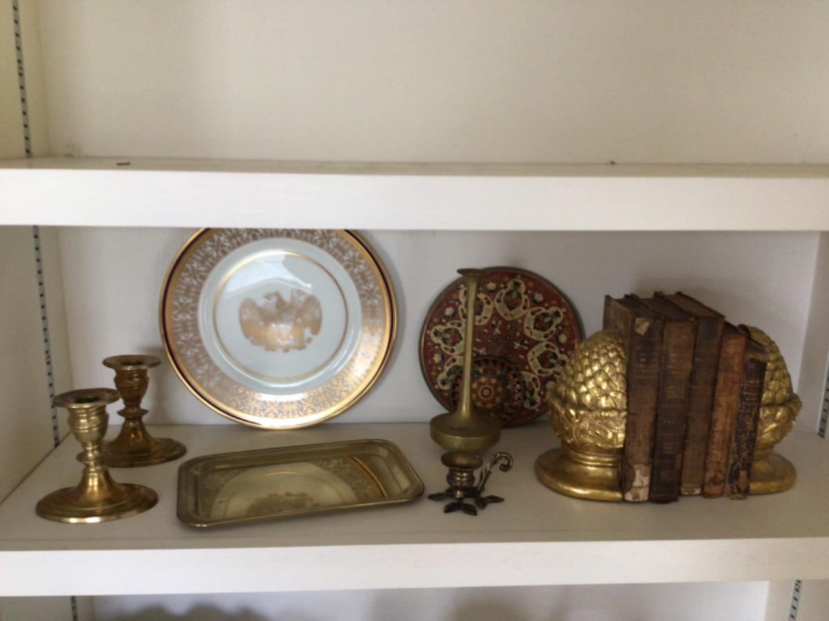 C471 Lot of Brass Decor, Antique Books , Collectors Plate