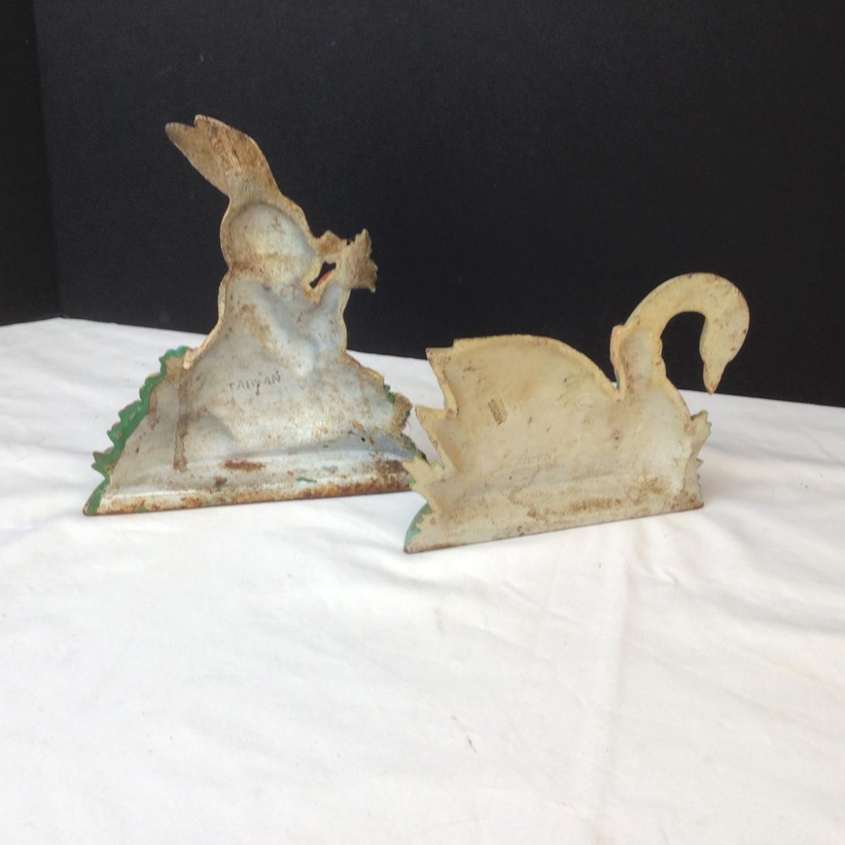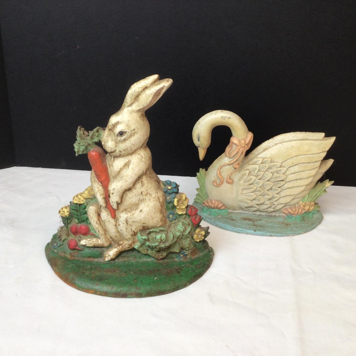471 Vintage Cast Iron Doorstop Rabbit & Swan