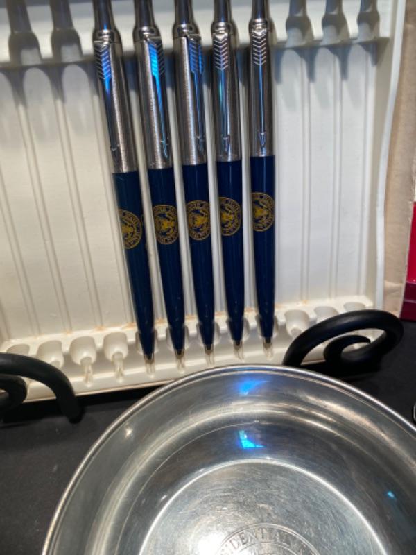Pens, Playing Cards, Pins, Cuff Links, Plate, Silver Bowl and more