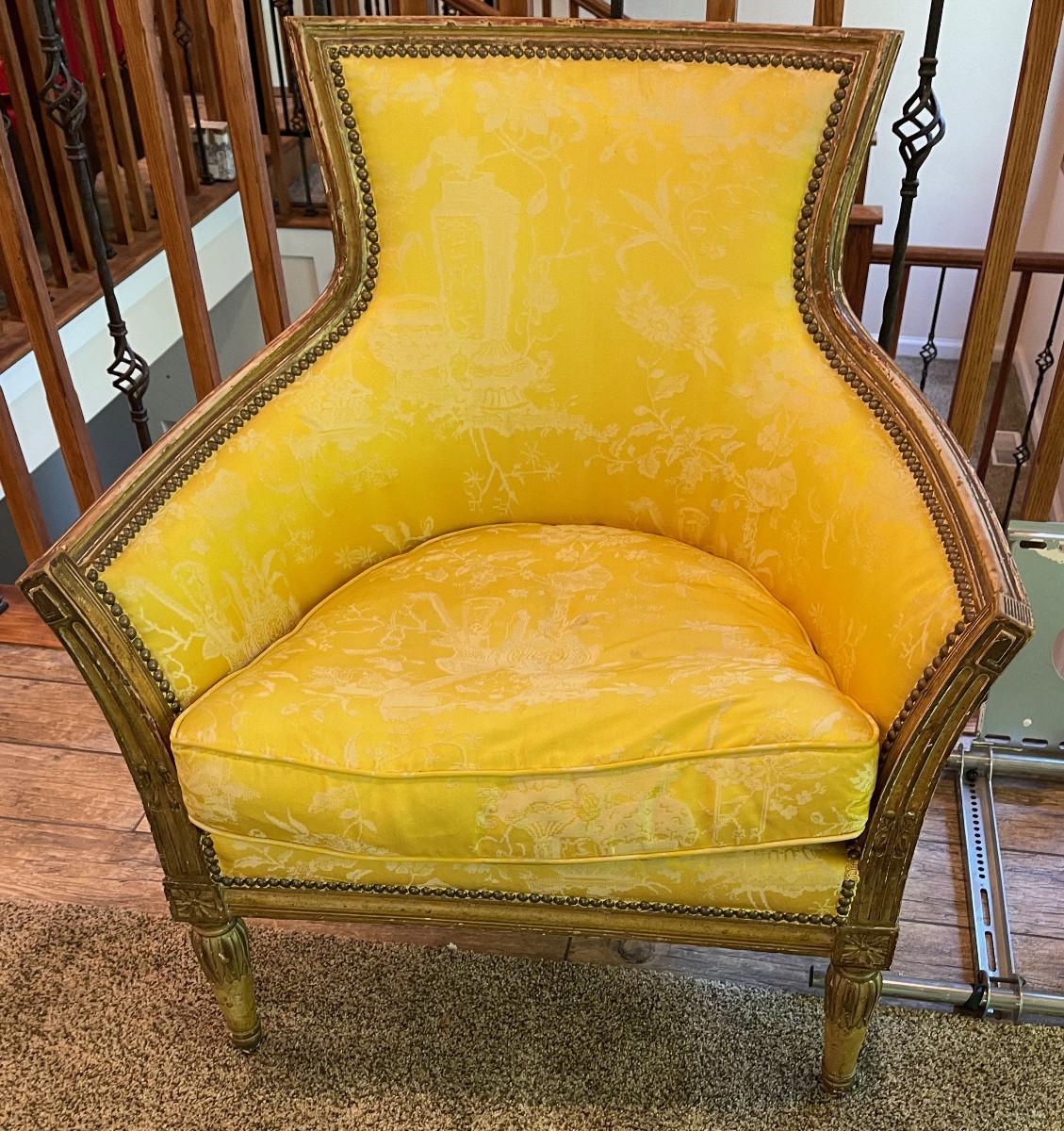 #474 ANTIQUE Side Chair w/down cushion, Bright Yellow