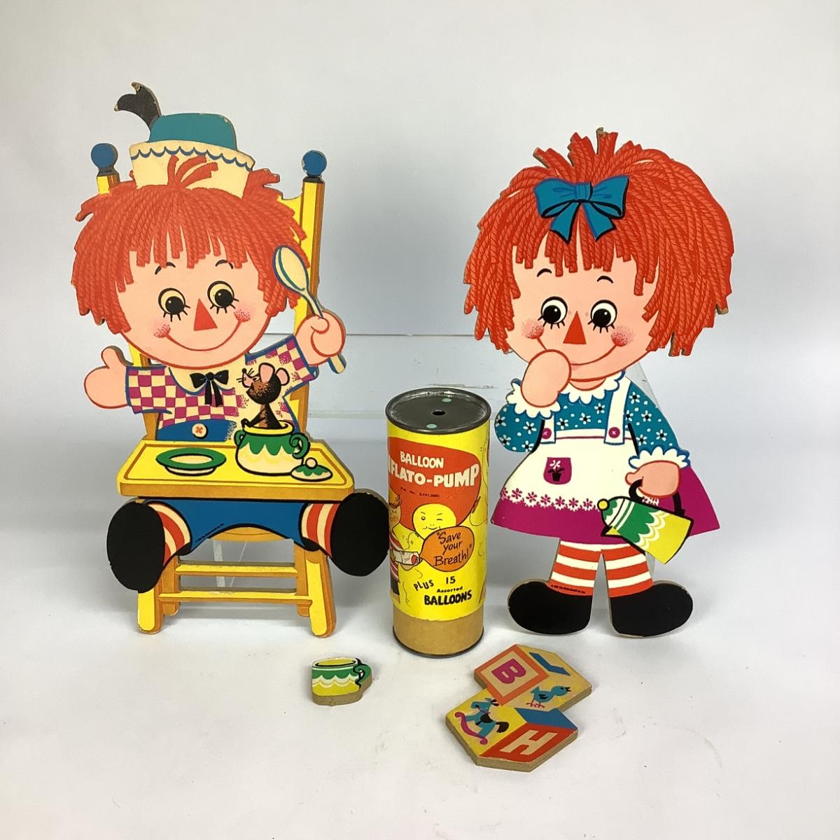 474 Vintage Raggedy Andy & Ann Cutouts & Inflato Balloon Hand Pump