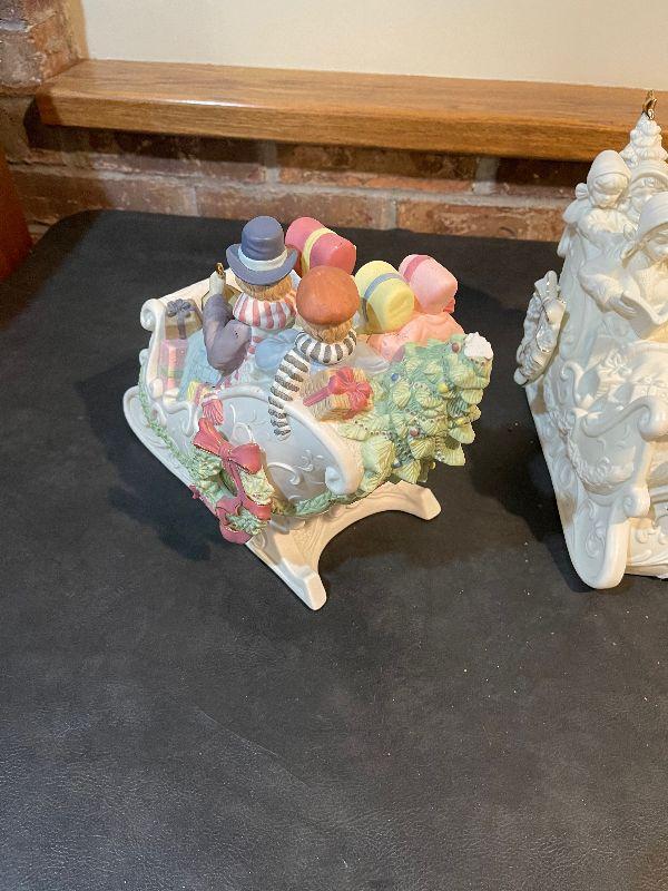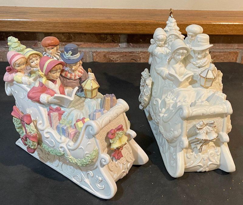#474B 2 Ceramic Holiday Carolers in Sleigh