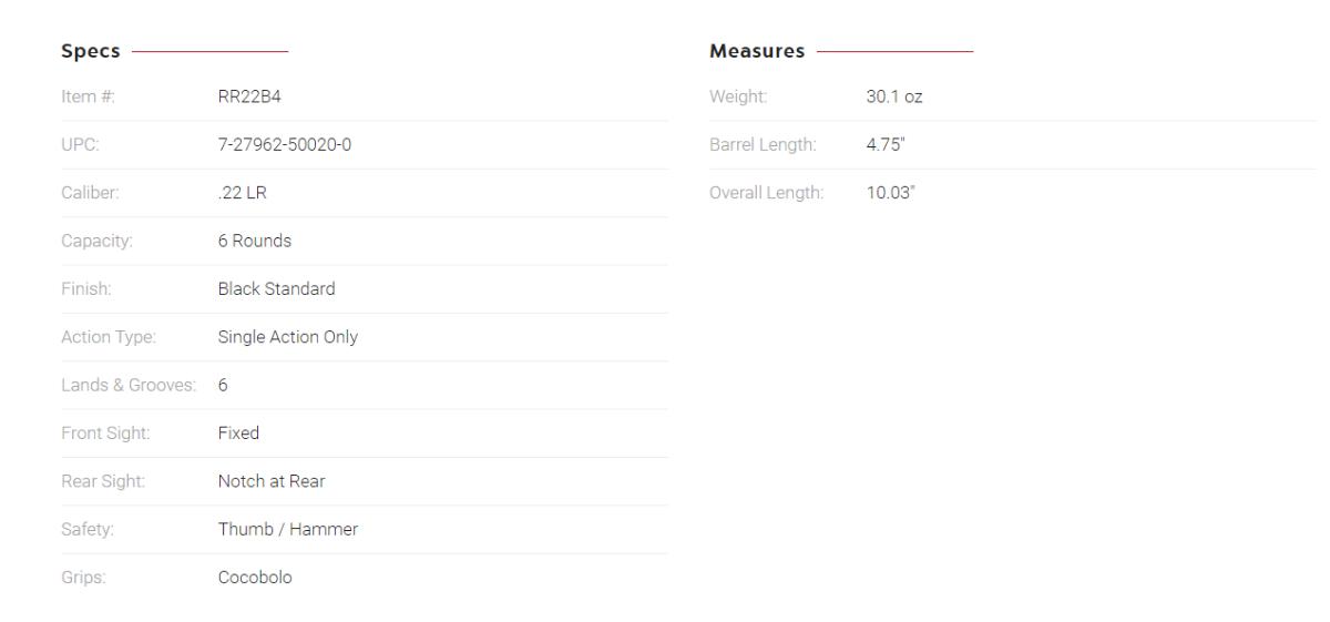 The Heritageâ„¢ Rough Rider° handguns are built with numerous grip options and feature the same classic profile and precision action as their big-bore counterparts yet come chambered in .22 LR or as a two-cylinder combo, allowing you to shoot either .22 LR or .22 WMR ammo. This version is chambered in .22 LR.