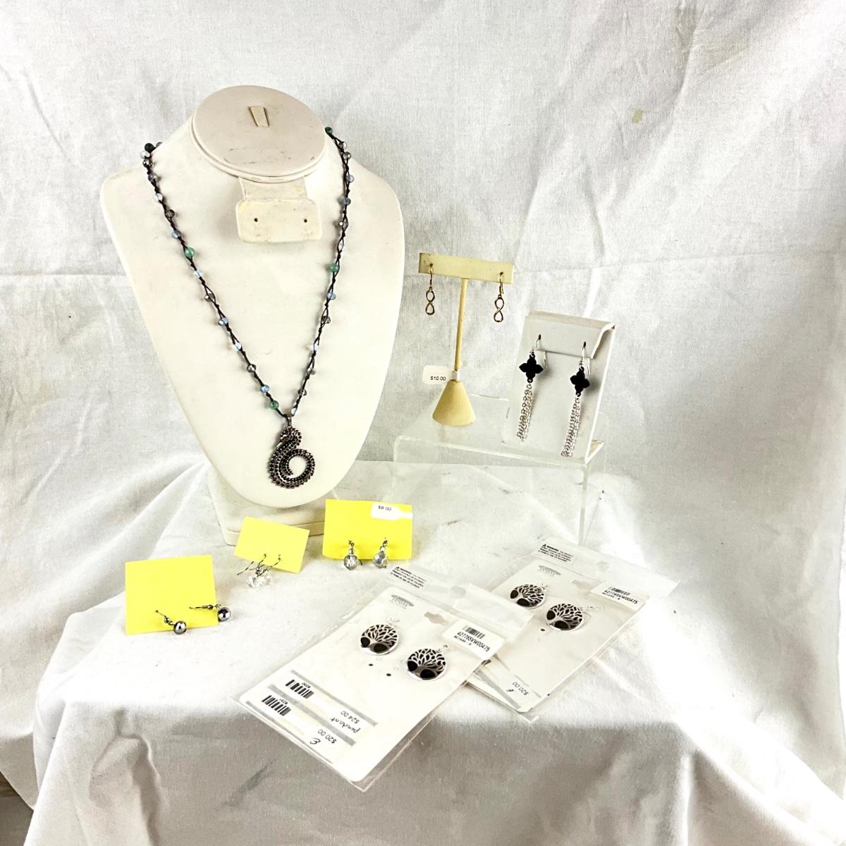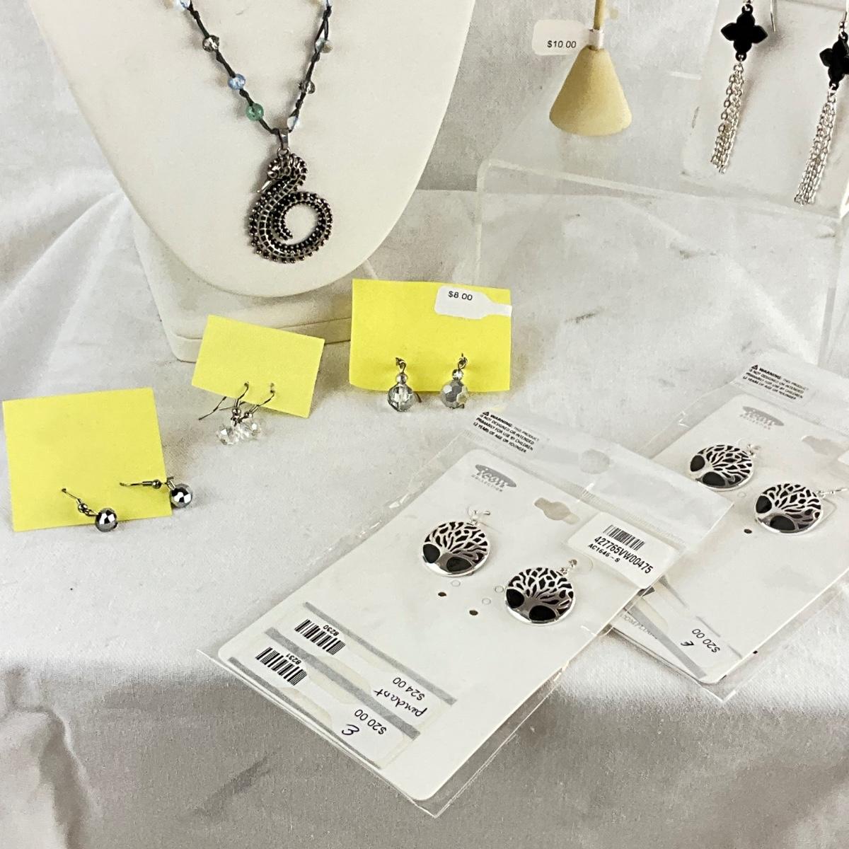This ensemble consists of 5 pairs of earrings with two pairs of silver and black tree earrings new in package