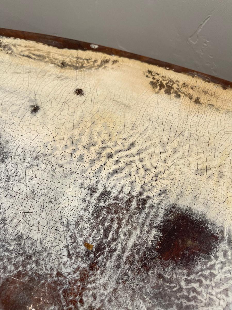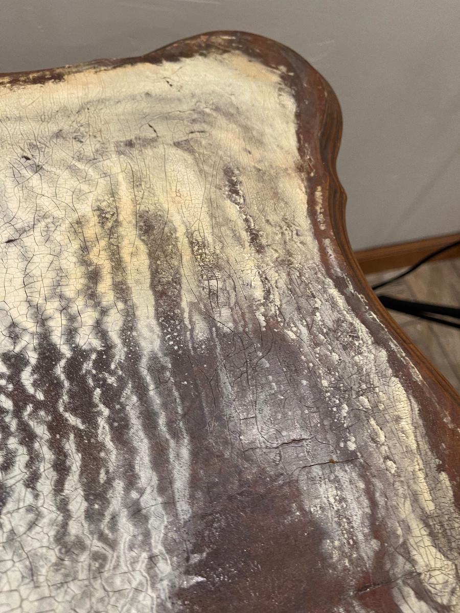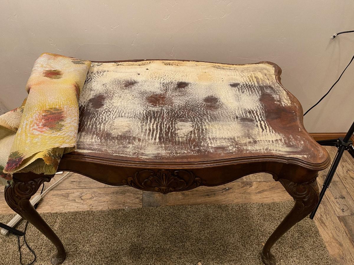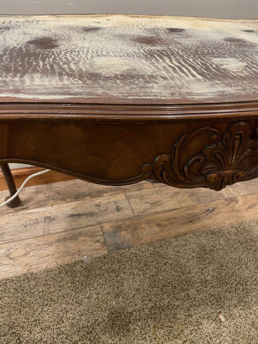41 x 26 x 29 With Custom Cut Glass Top. Had a piece of Fabric Is stuck to but would strip off Possibly Flame Mahogany Finish on top.