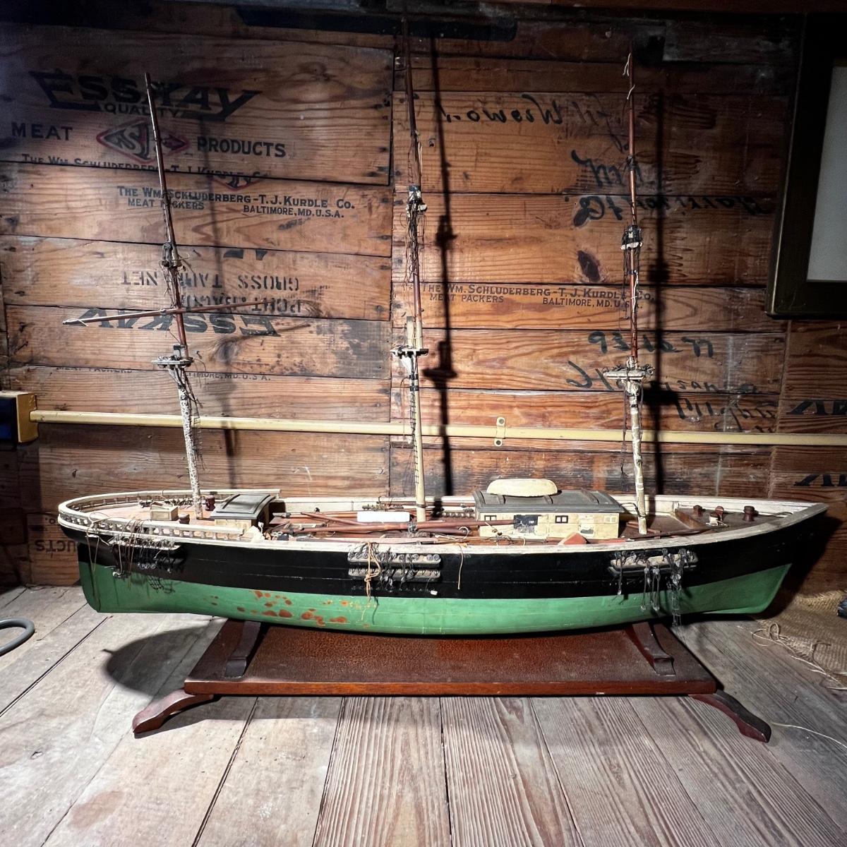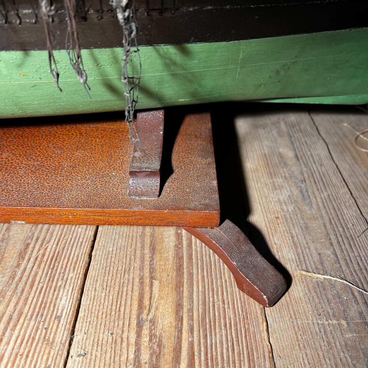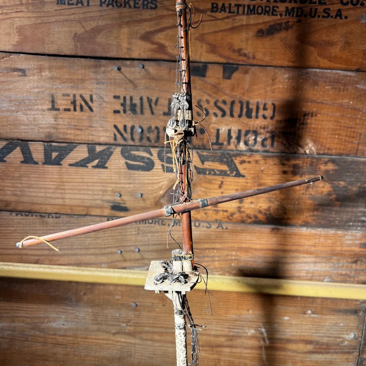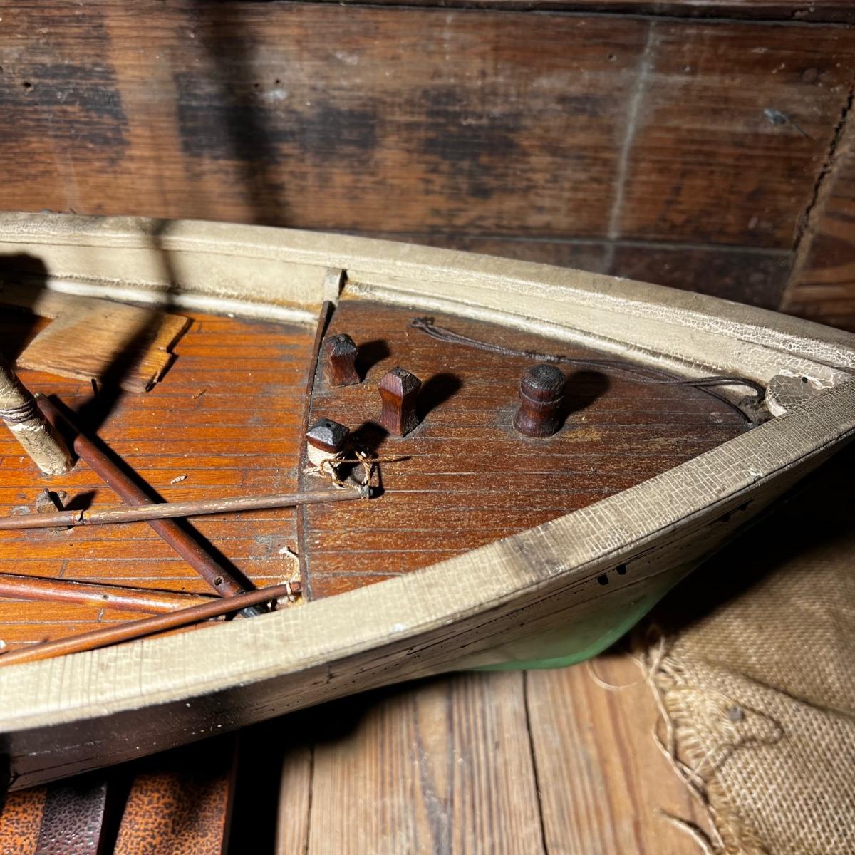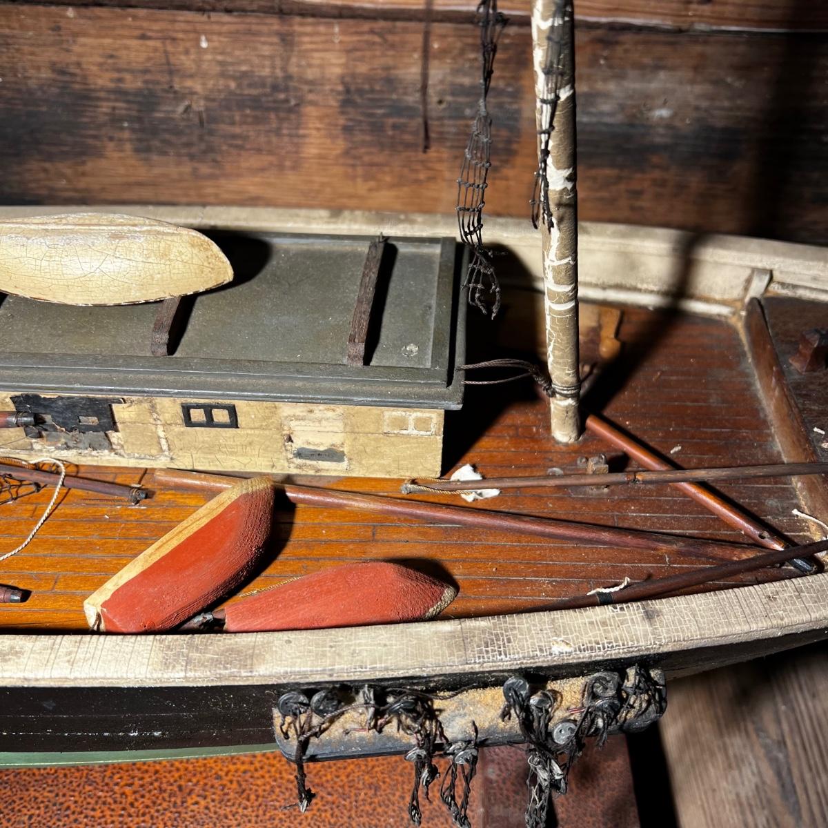 Hull of ship is completely intact but is missing the sails. Mast parts are included and other pieces. Ship needs restoration.