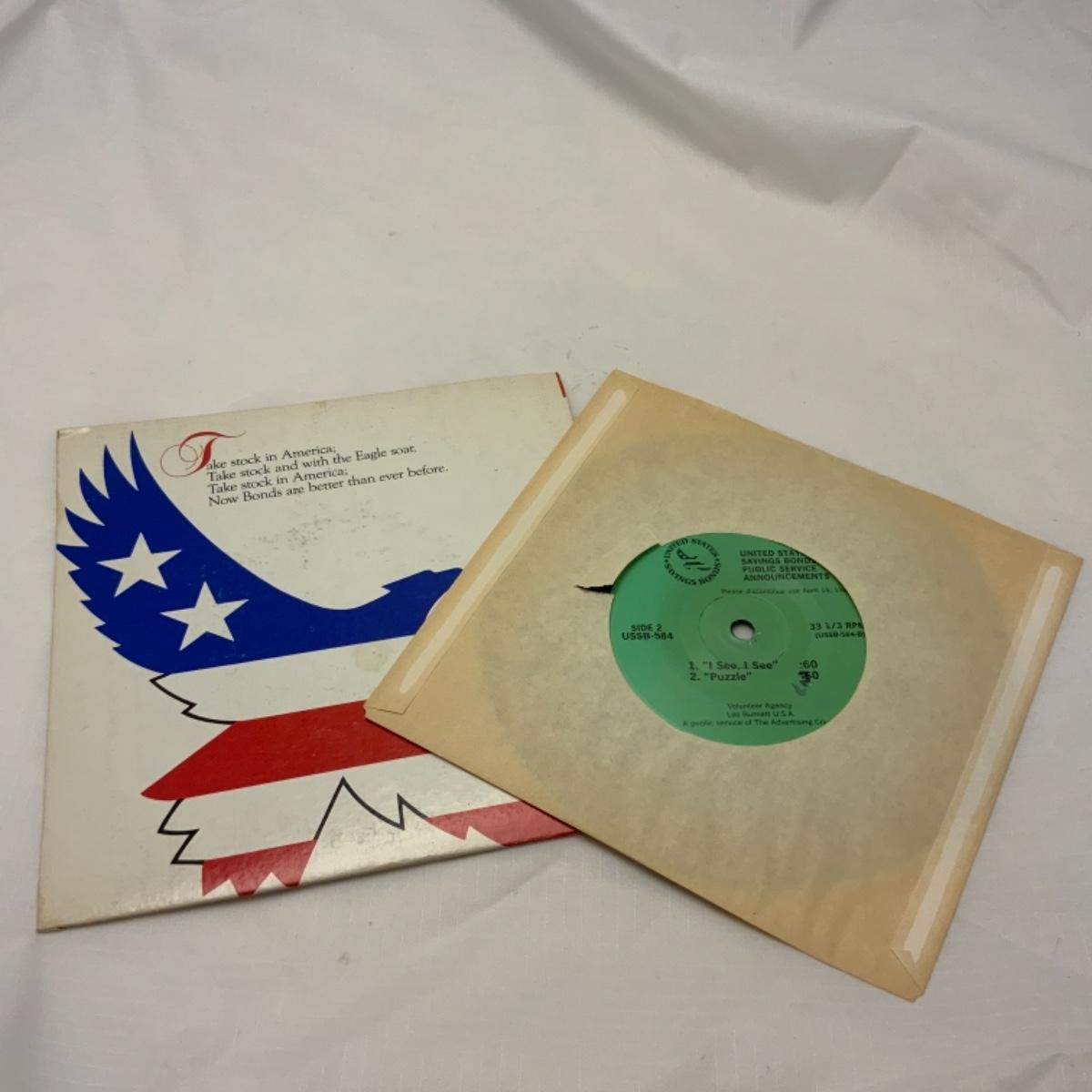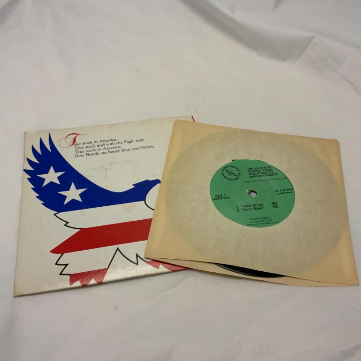US Savings Bonds Ad Council Advertisement record that was sent out to radio stations. A really interesting addition to a currency collector’s portfolio! I played this 7” 33 1/3 album on my record player and it sounds crisp and clean. Although it wasn’t supposed to be used past April of 1985“🦆I won’t tell anyone if you won’t! Please see photos for details and condition. ::: Shipping is available on this lot. If you require shipping you must let us know at the close of the auction. We will coordinate with you after the item has been won. Shipping fees will include insurance up to or exceeding the value of all items being mailed. If you have any questions regarding this lot please contact the auctioneer either via this website, by direct email or by phone. PICK UP TIMES and other important information can be found in the TERMS and DESCRIPTION of the auction. Please take a look for pertinent information. Thanks!