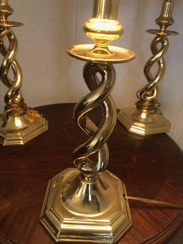 #48  3 BRASS Barley Twist Stem TOUCH LAMPS