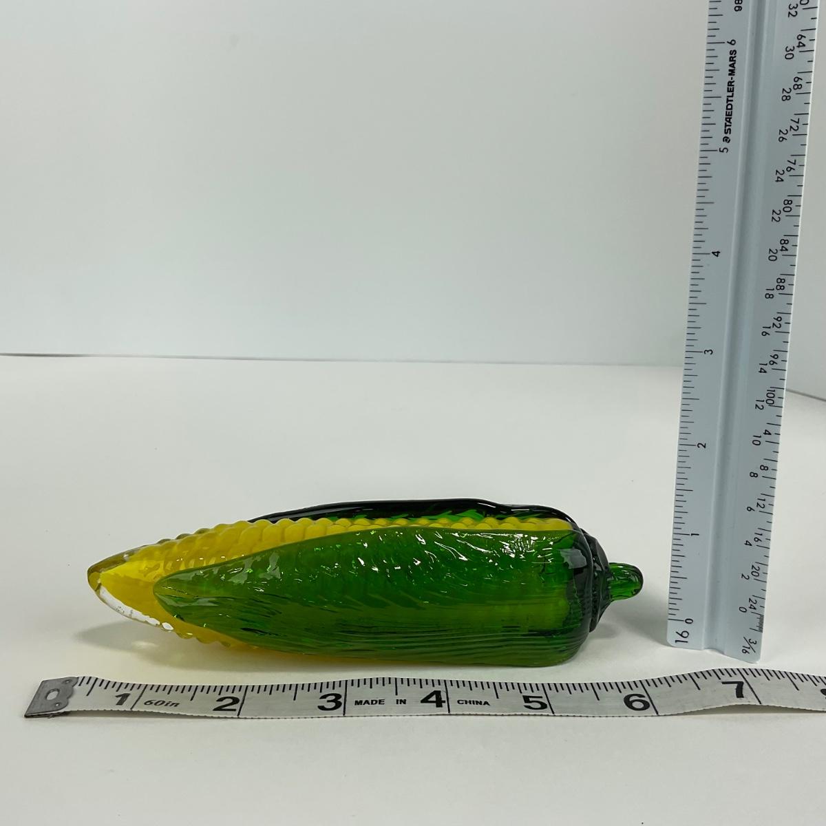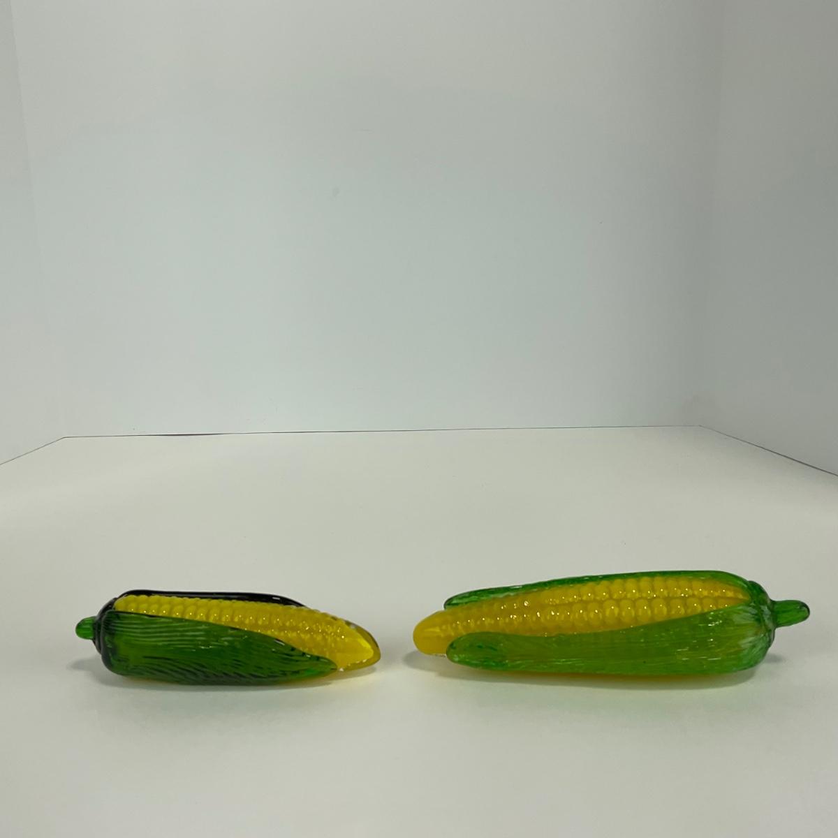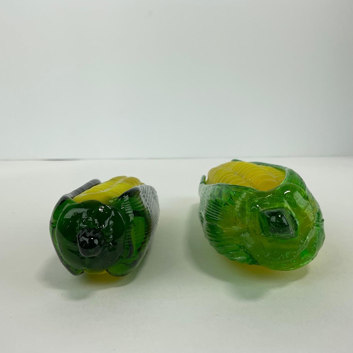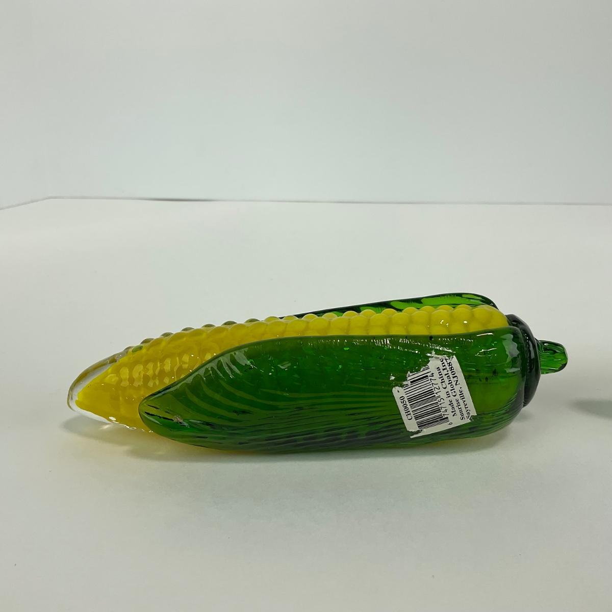 Two vintage art glass yellow corn figures. This piece does have some scuffs, scratches, marks, or slight damage, but otherwise appears to be in great shape. Please see photos for details and condition. Any condition statement is given as a courtesy to a client, is an opinion, and should not be treated as a statement of fact. Reference to condition written, oral or within a condition report shall not be regarded as a full account of condition and may not include all defects, alterations, or restorations. Absence of a condition report does not imply a lot is flawless or lacking imperfections or damage. Katherine’s Auction & Appraisal Service shall have no responsibility for any error or omission. Returns shall not be accepted on the basis of condition. ::: Shipping is available on this lot. If you require shipping you must let us know at the close of the auction. We will coordinate with you after the item has been won. Shipping fees will include insurance up to or exceeding the value of all items being mailed. If you have any questions regarding this lot please contact the auctioneer either via this website, by direct email or by phone. PICK UP TIMES and other important information can be found in the TERMS and DESCRIPTION of the auction. Please take a look for pertinent information. Thanks!