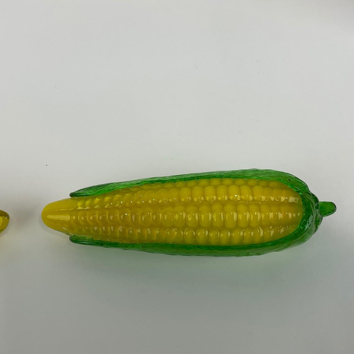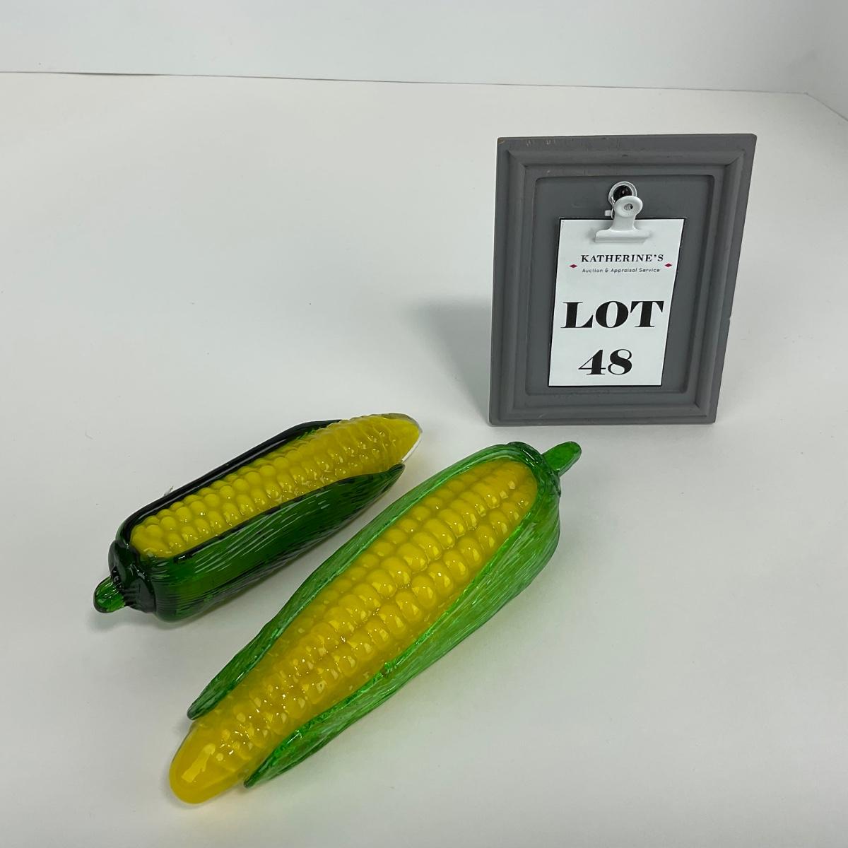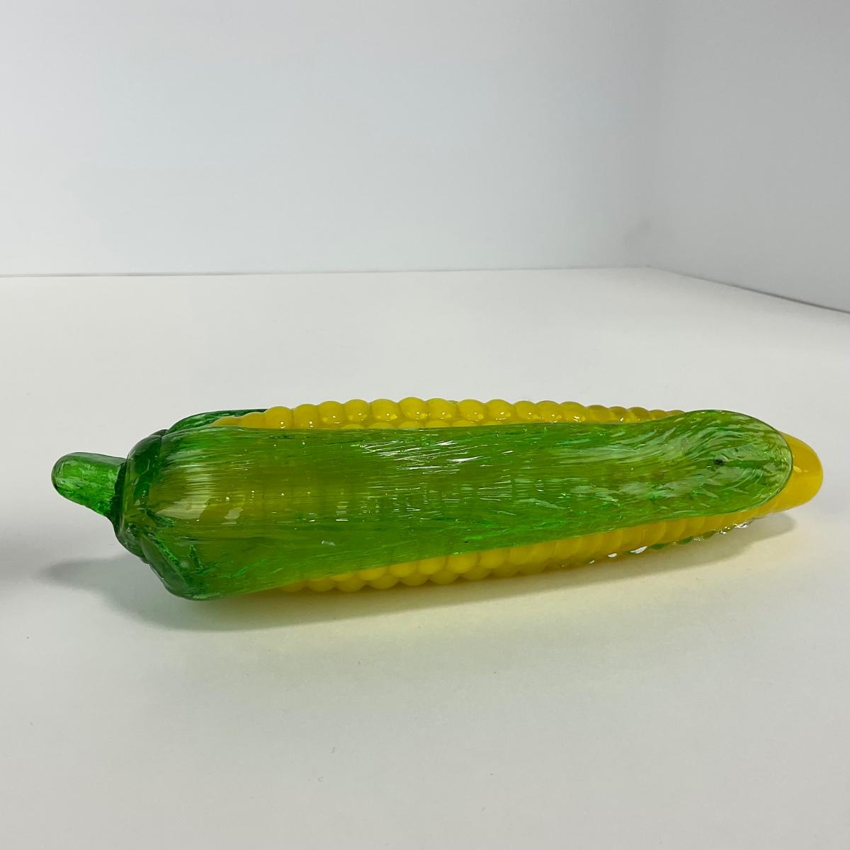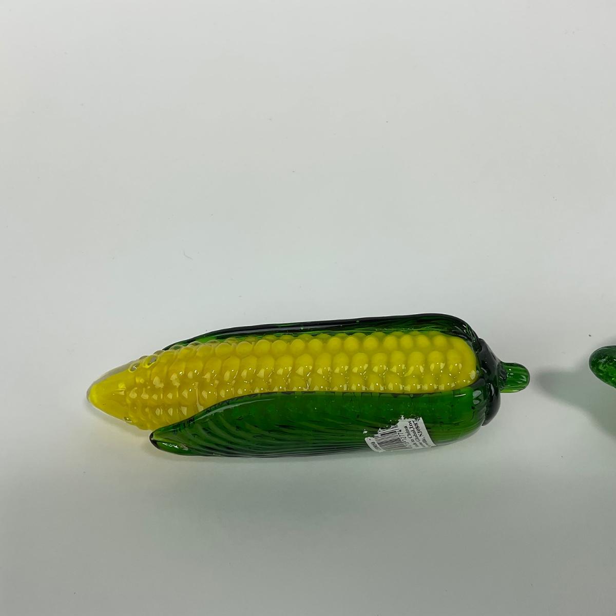 Two vintage art glass yellow corn figures. This piece does have some scuffs, scratches, marks, or slight damage, but otherwise appears to be in great shape. Please see photos for details and condition. Any condition statement is given as a courtesy to a client, is an opinion, and should not be treated as a statement of fact. Reference to condition written, oral or within a condition report shall not be regarded as a full account of condition and may not include all defects, alterations, or restorations. Absence of a condition report does not imply a lot is flawless or lacking imperfections or damage. Katherine’s Auction & Appraisal Service shall have no responsibility for any error or omission. Returns shall not be accepted on the basis of condition. ::: Shipping is available on this lot. If you require shipping you must let us know at the close of the auction. We will coordinate with you after the item has been won. Shipping fees will include insurance up to or exceeding the value of all items being mailed. If you have any questions regarding this lot please contact the auctioneer either via this website, by direct email or by phone. PICK UP TIMES and other important information can be found in the TERMS and DESCRIPTION of the auction. Please take a look for pertinent information. Thanks!
