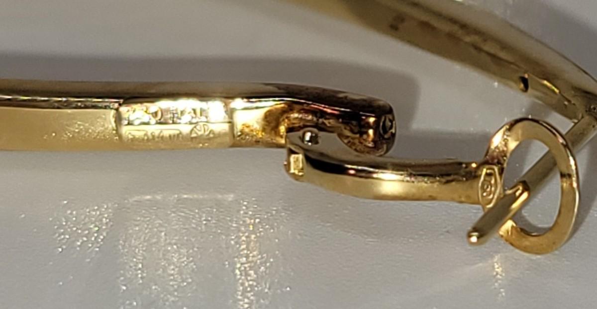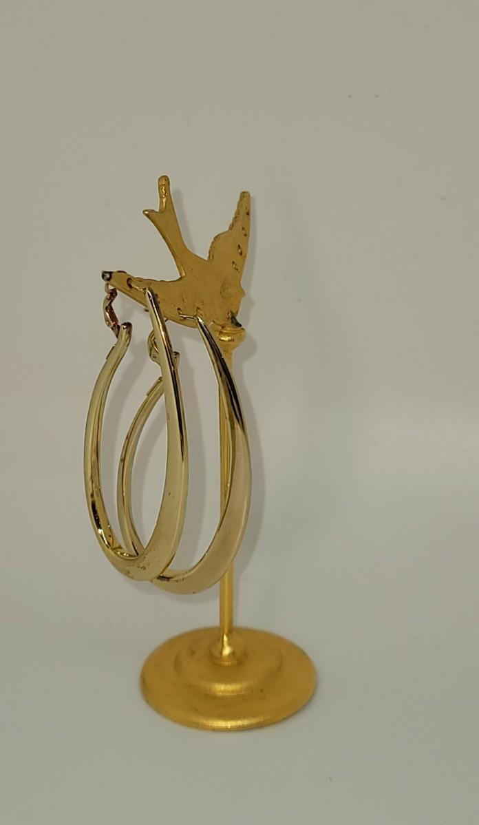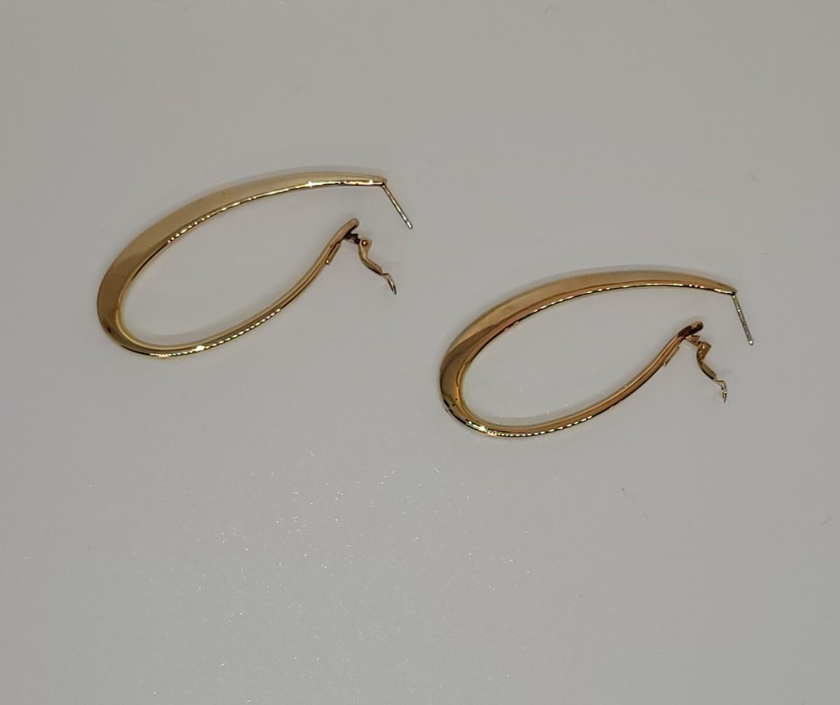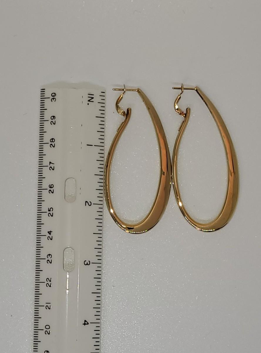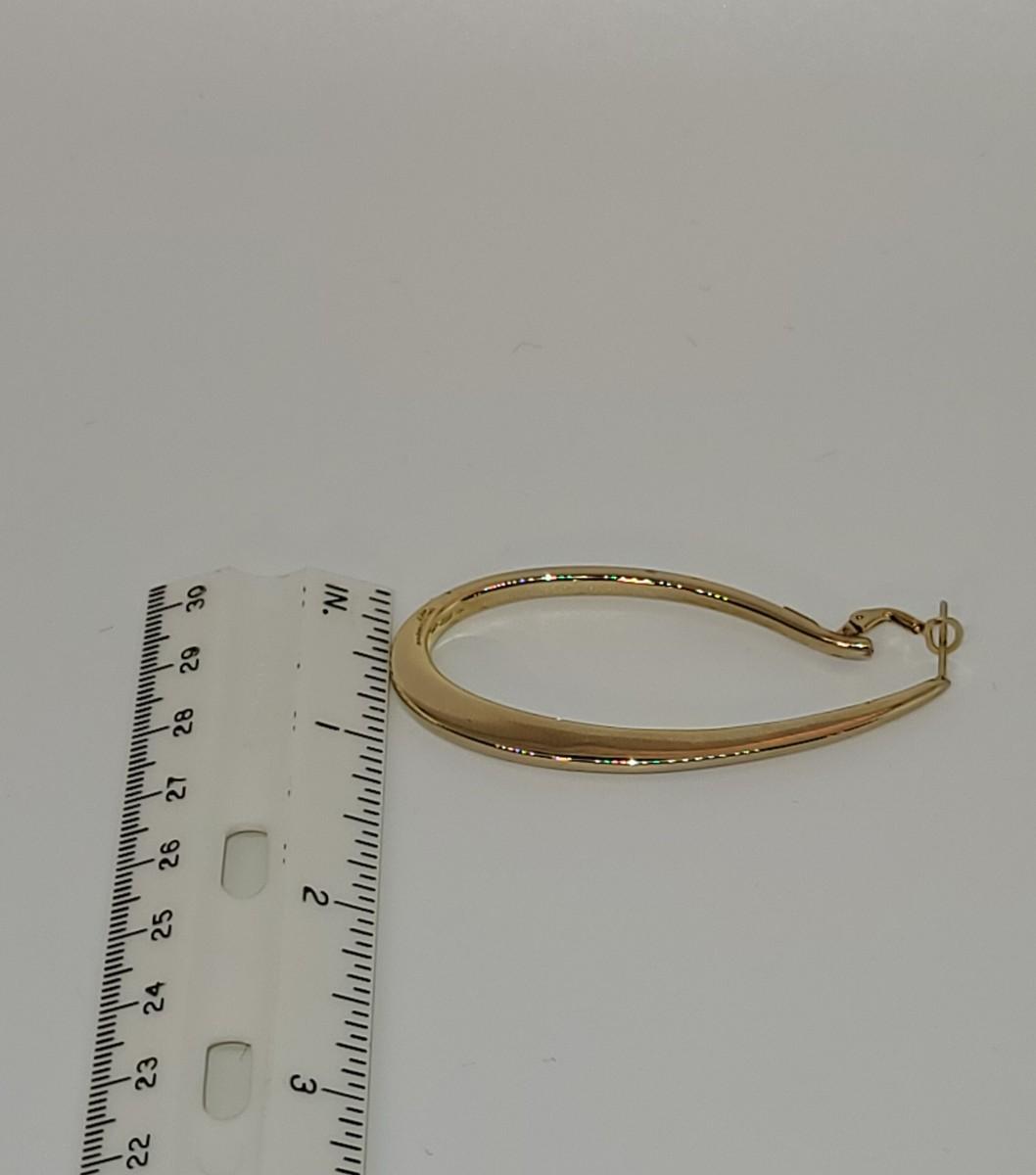 10.2g 18k gold hoop, 2 5" L and 1.25W. Please see all pictures as they are the best representation of the items. The pictures show condition, measurements if taken, and what is included in the lot. Due to the large amount that we photograph and the time frame, we are not always able to take measurements. All items unless noted, are pre-owned and have been used.