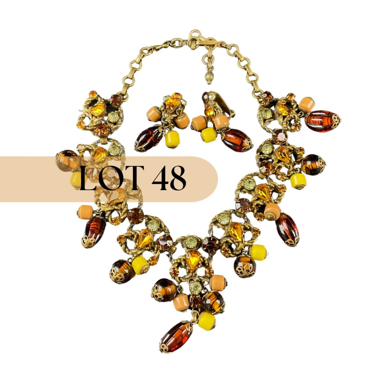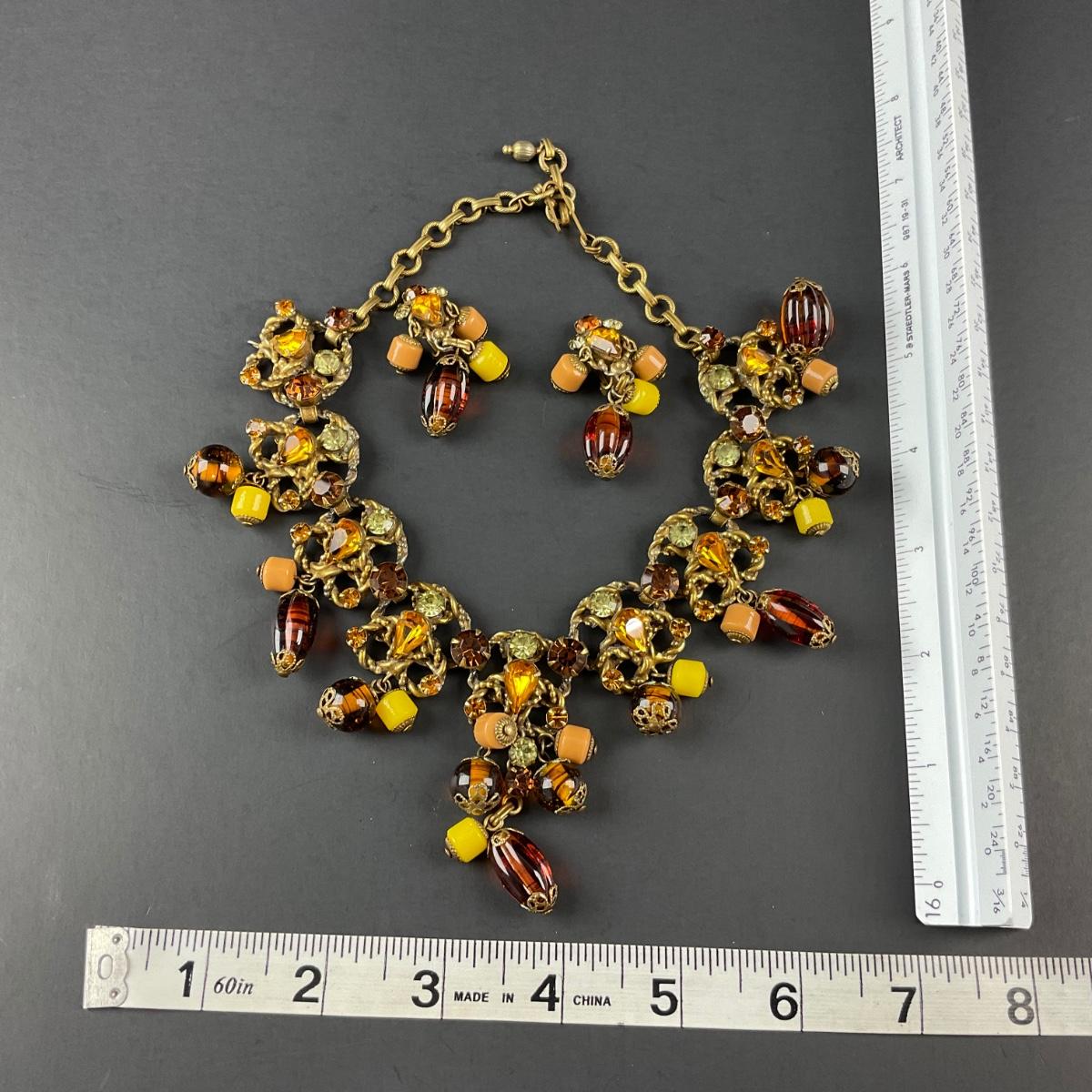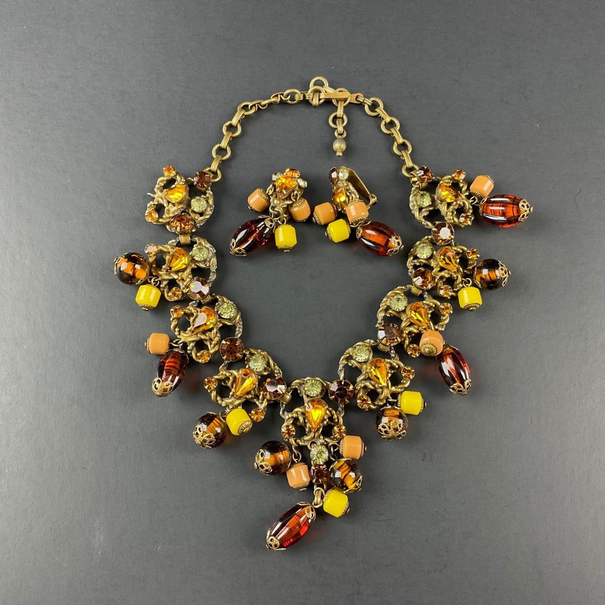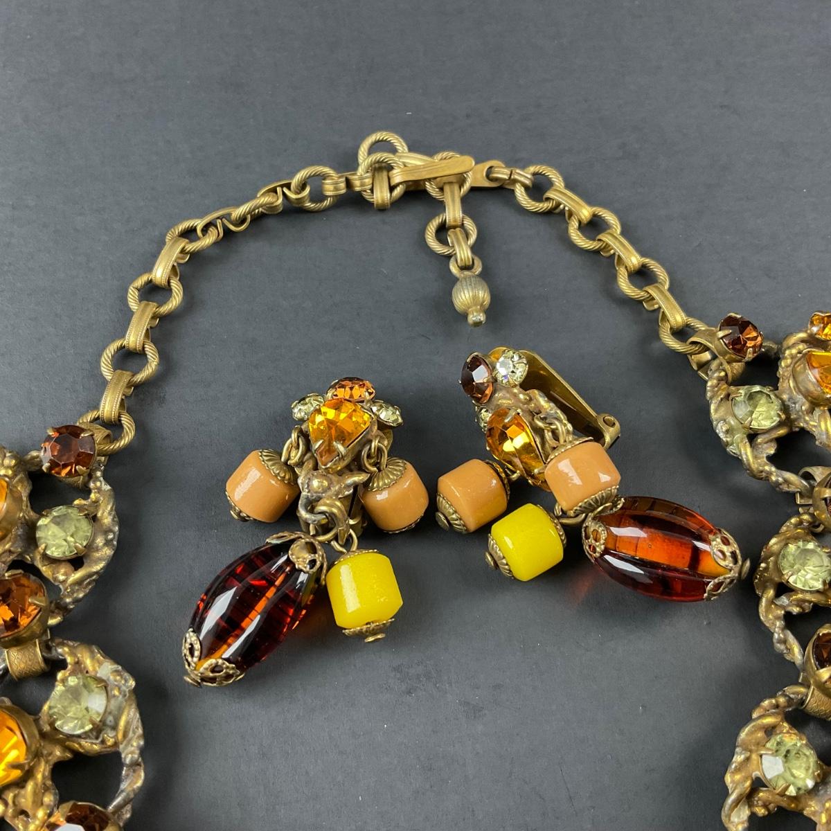 -48- COSTUME | 1930’s Amber & Gold Earrings & Necklace