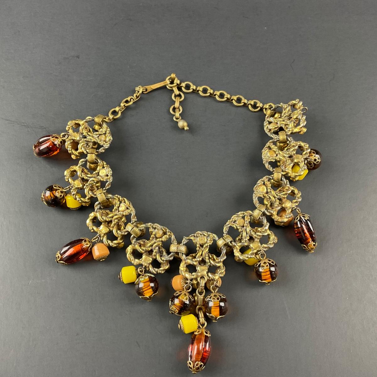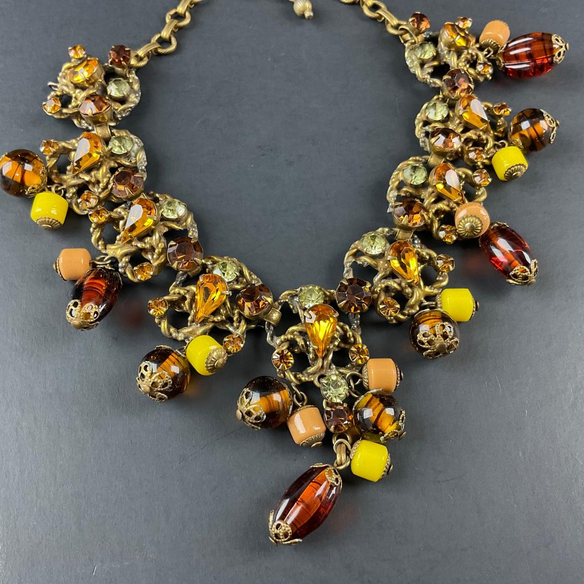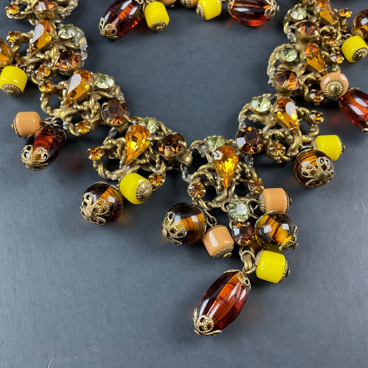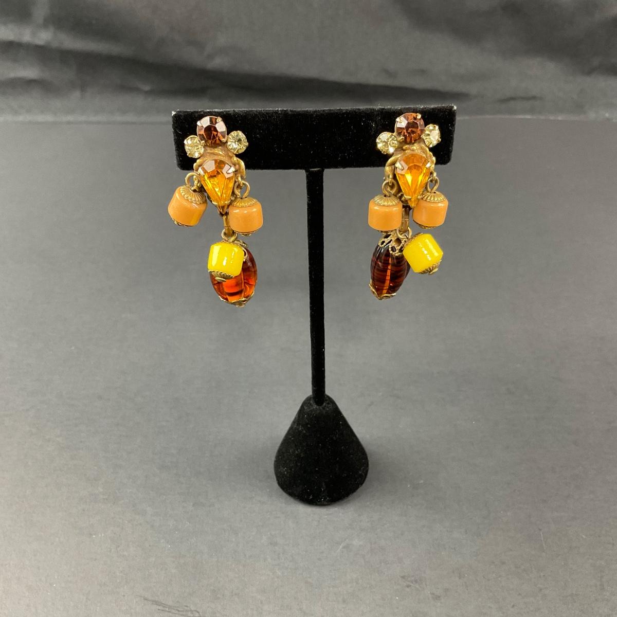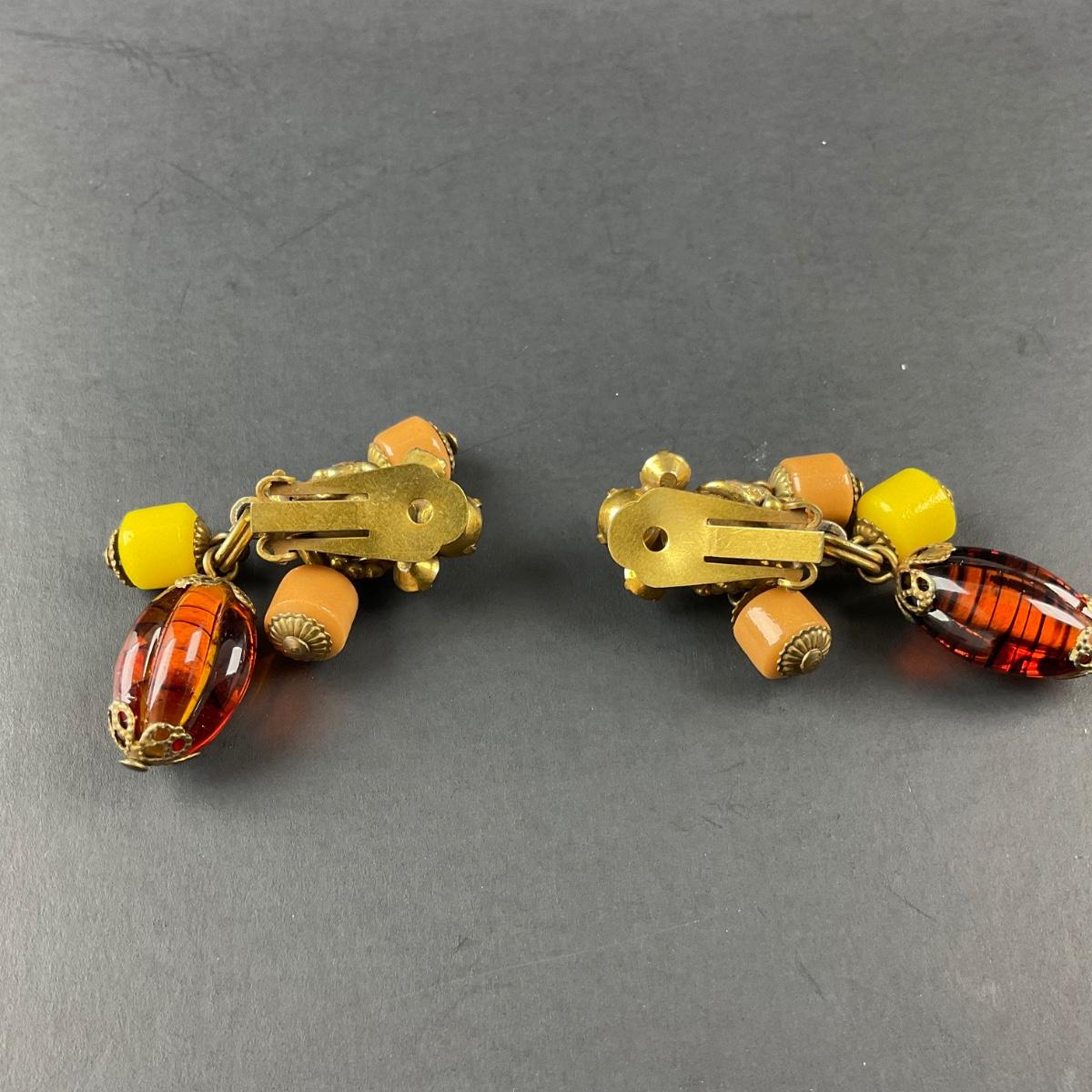-48- COSTUME | 1930’s Amber & Gold Earrings & Necklace
