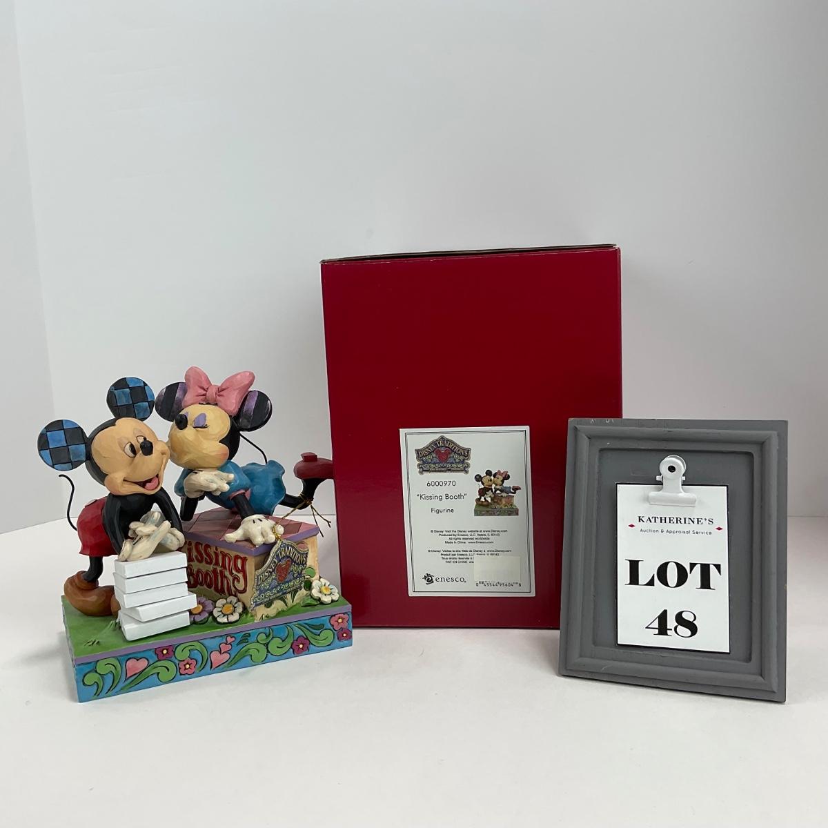One Enesco Jim Shore “Kissing Booth” figure. Comes with box and appears to be in great shape. Please see photos for details and condition. Any condition statement is given as a courtesy to a client, is an opinion, and should not be treated as a statement of fact. Reference to condition written, oral or within a condition report shall not be regarded as a full account of condition and may not include all defects, alterations, or restorations. Absence of a condition report does not imply a lot is flawless or lacking imperfections or damage. Katherine’s Auction & Appraisal Service shall have no responsibility for any error or omission. Returns shall not be accepted on the basis of condition. ::: Shipping is available on this lot. If you require shipping you must let us know at the close of the auction. We will coordinate with you after the item has been won. Shipping fees will include insurance up to or exceeding the value of all items being mailed. If you have any questions regarding this lot please contact the auctioneer either via this website, by direct email or by phone. PICK UP TIMES and other important information can be found in the TERMS and DESCRIPTION of the auction. Please take a look for pertinent information. Thanks!