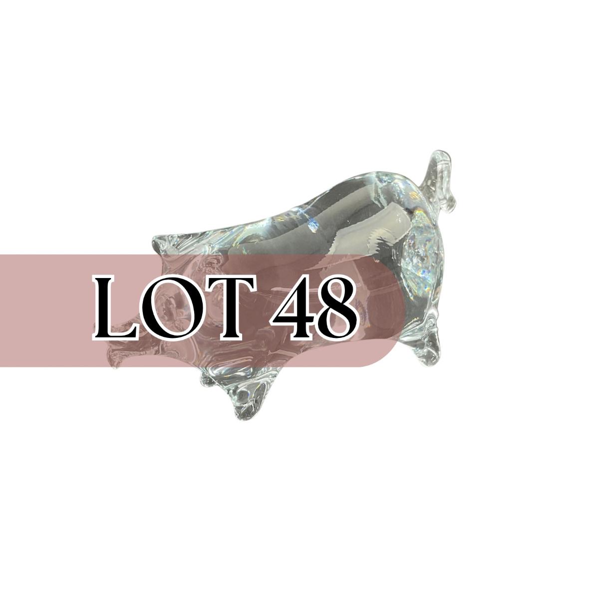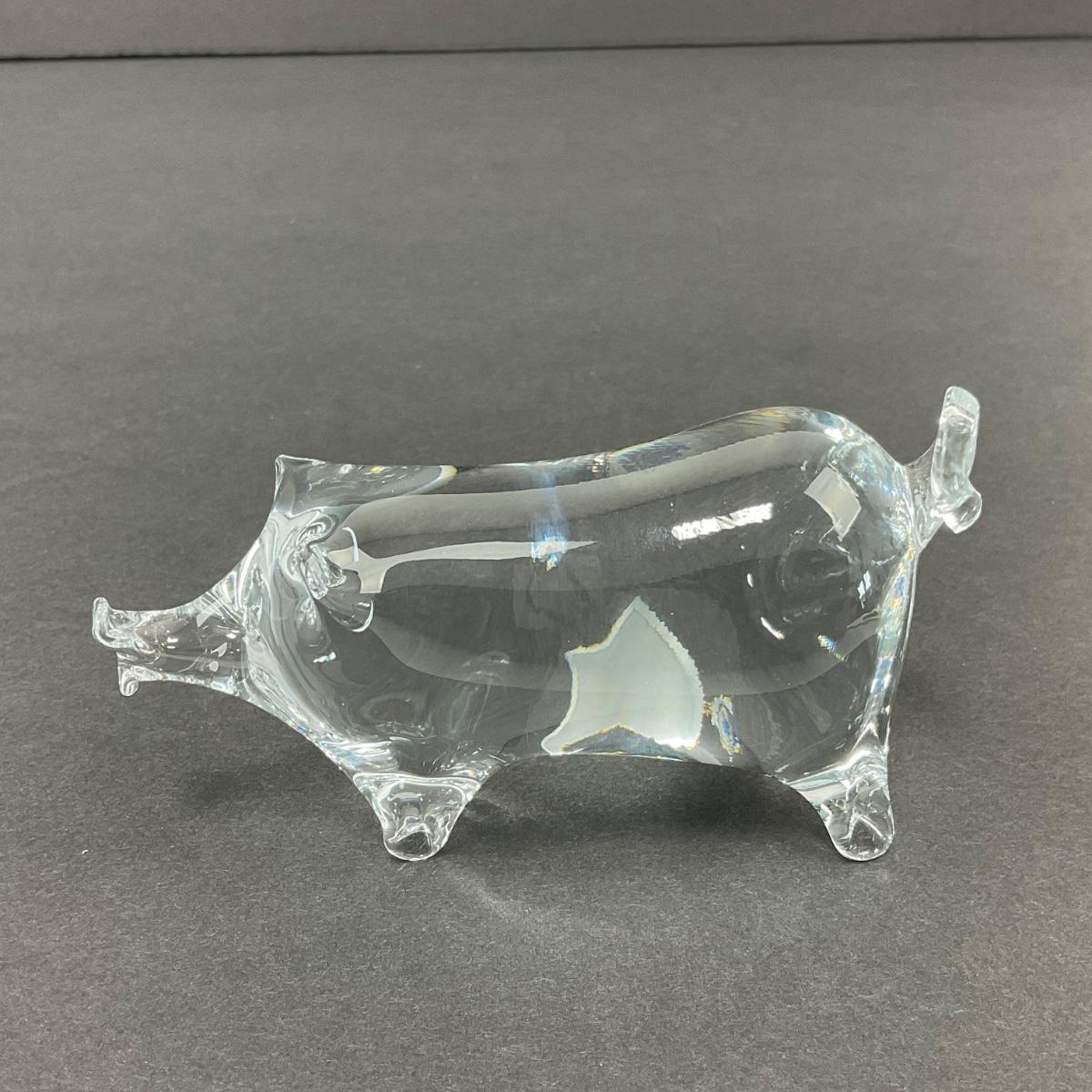 One art glass small pig figure. Please see photos for details and condition. Any condition statement is given as a courtesy to a client, is an opinion, and should not be treated as a statement of fact. Reference to condition written, oral or within a condition report shall not be regarded as a full account of condition and may not include all defects, alterations, or restorations. Absence of a condition report does not imply a lot is flawless or lacking imperfections or damage. Katherine’s Auction & Appraisal Service shall have no responsibility for any error or omission. Returns shall not be accepted on the basis of condition. ::: Shipping is available on this lot. If you require shipping you must let us know at the close of the auction. We will coordinate with you after the item has been won. Shipping fees will include insurance up to or exceeding the value of all items being mailed. If you have any questions regarding this lot please contact the auctioneer either via this website, by direct email or by phone. PICK UP TIMES and other important information can be found in the TERMS and DESCRIPTION of the auction. Please take a look for pertinent information. Thanks!