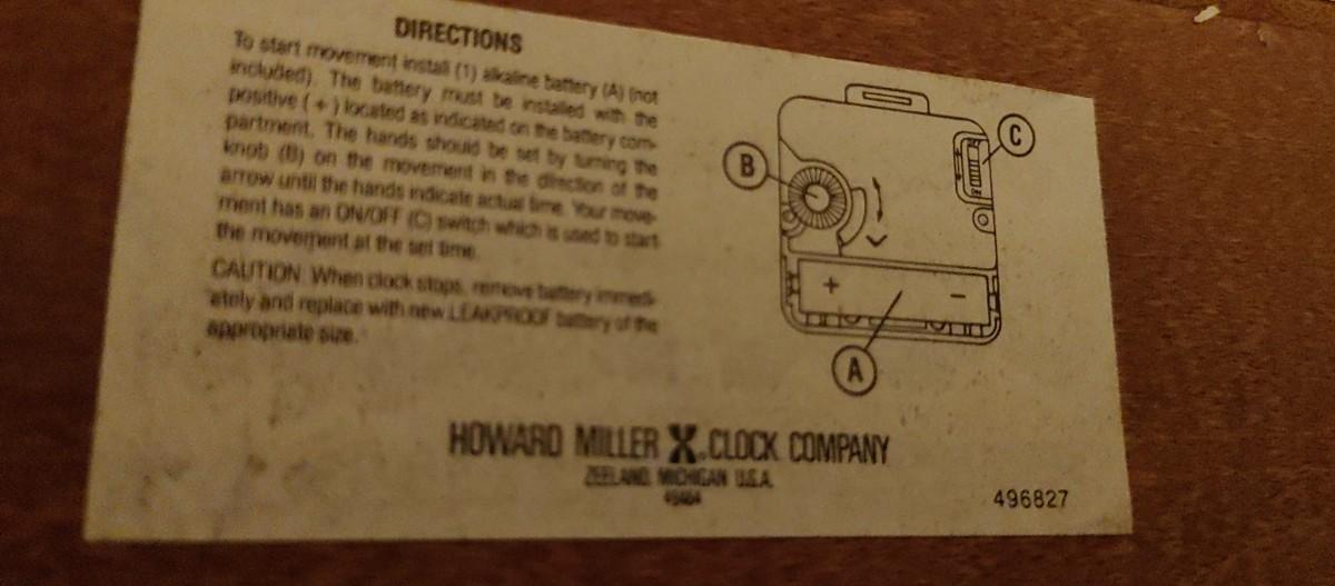 Accurate, Quartz, non-chiming battery operated movement uses one AA Battery.