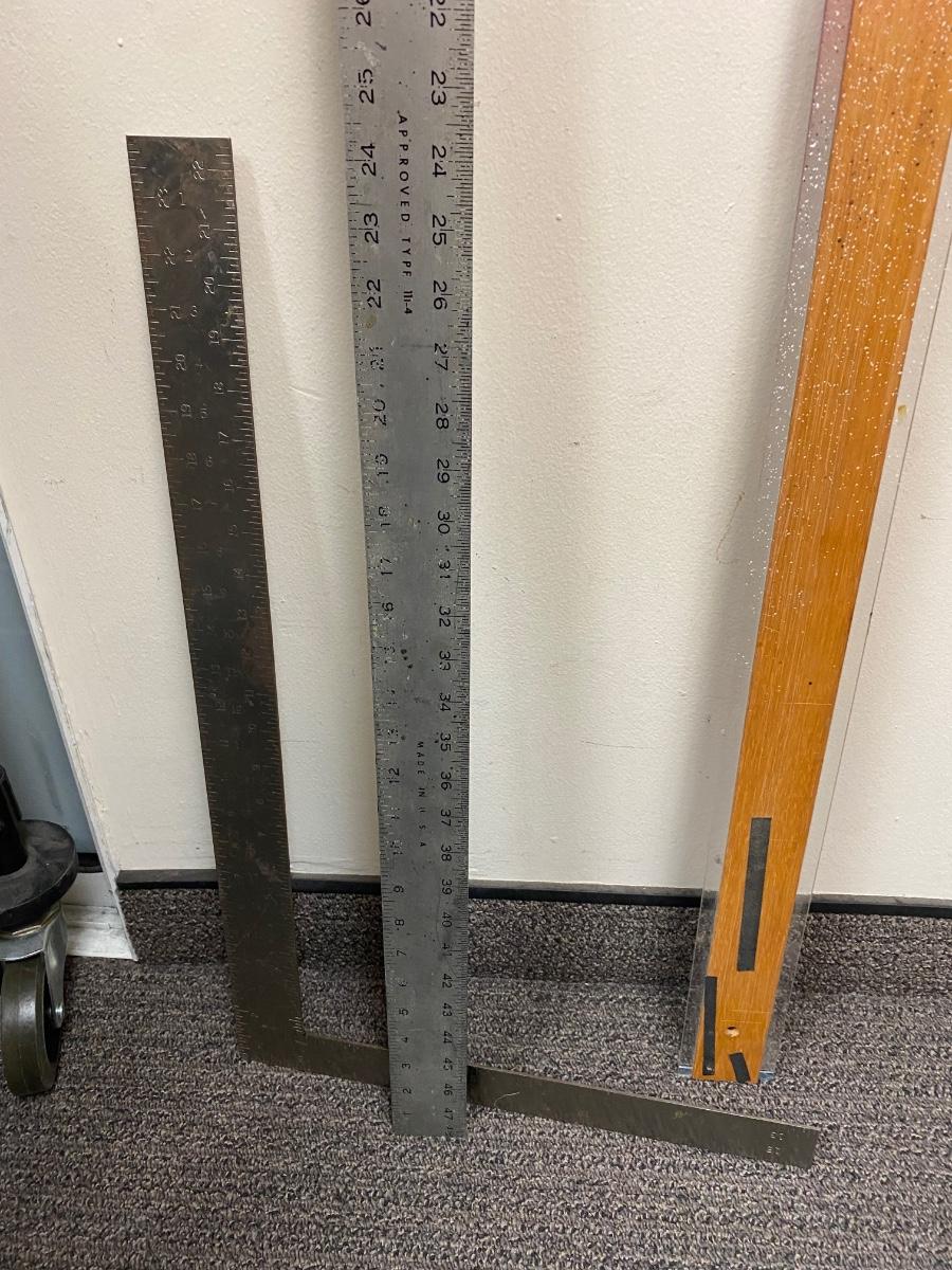 48" Metal Ruler T Square Lot. Three-piece lot, in good used condition.