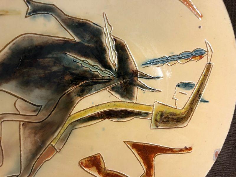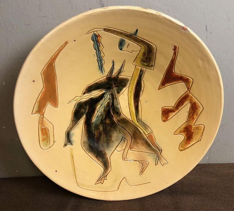 #48 Mid-Century Art Pottery Bullfighter Bowl