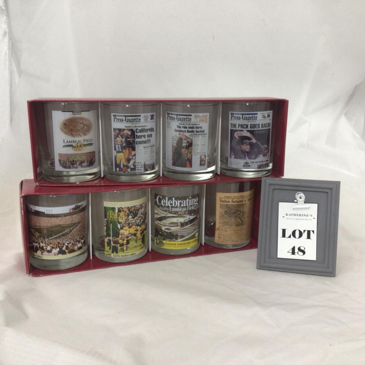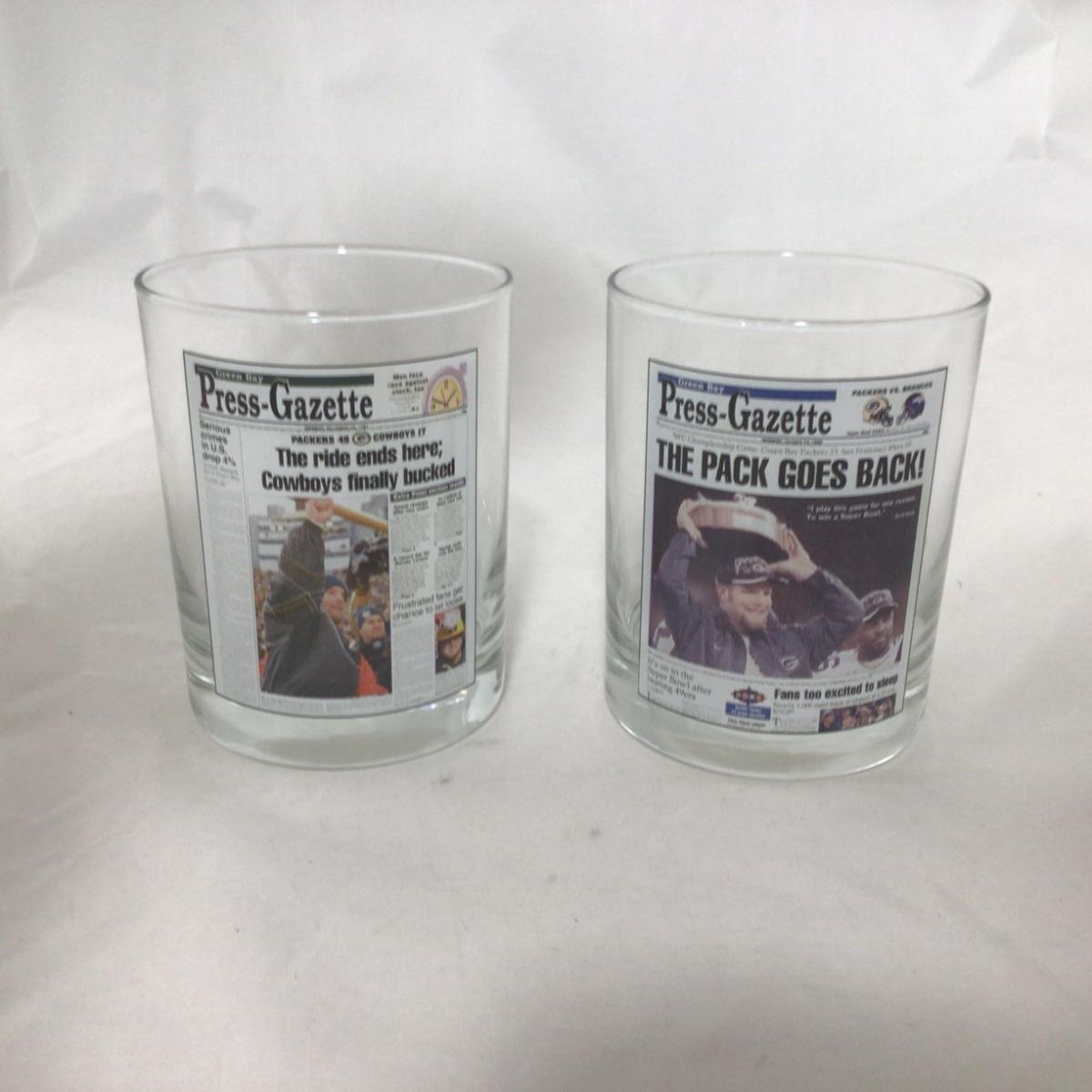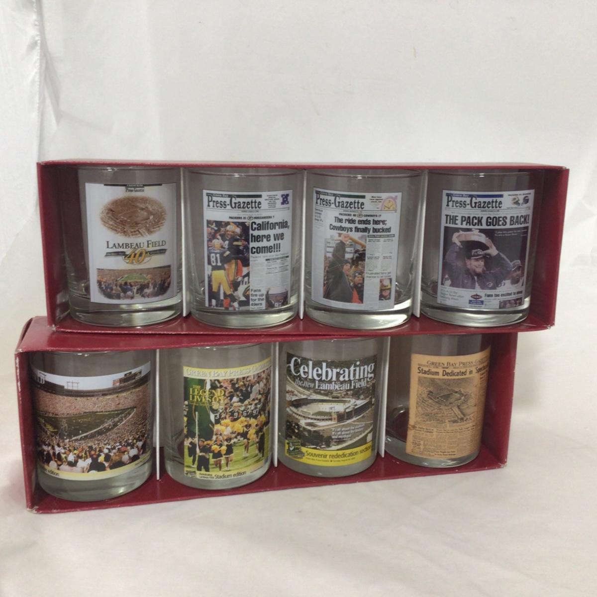 Set of eight press gazette glasses. Please see photos for details and condition. ::: Shipping is available on this lot. If you require shipping you must let us know at the close of the auction. We will coordinate with you after the item has been won. Shipping fees will include insurance up to or exceeding the value of all items being mailed. If you have any questions regarding this lot please contact the auctioneer either via this website, by direct email or by phone. PICK UP TIMES and other important information can be found in the TERMS and DESCRIPTION of the auction. Please take a look for pertinent information. Thanks!