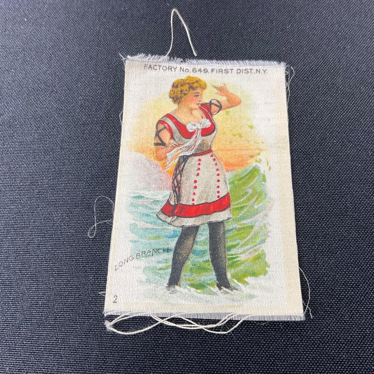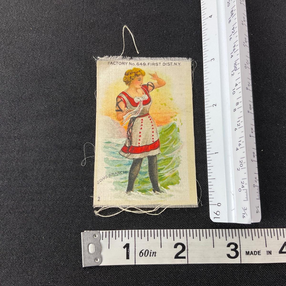 One antique Edwardian bathing beauty tobacco silk. #2 Long Branch. Please see photos for details and condition. Any condition statement is given as a courtesy to a client, is an opinion, and should not be treated as a statement of fact. Reference to condition written, oral or within a condition report shall not be regarded as a full account of condition and may not include all defects, alterations, or restorations. Absence of a condition report does not imply a lot is flawless or lacking imperfections or damage. Katherine’s Auction & Appraisal Service shall have no responsibility for any error or omission. Returns shall not be accepted on the basis of condition. ::: Shipping is available on this lot. If you require shipping you must let us know at the close of the auction. We will coordinate with you after the item has been won. Shipping fees will include insurance up to or exceeding the value of all items being mailed. If you have any questions regarding this lot please contact the auctioneer either via this website, by direct email or by phone. PICK UP TIMES and other important information can be found in the TERMS and DESCRIPTION of the auction. Please take a look for pertinent information. Thanks!