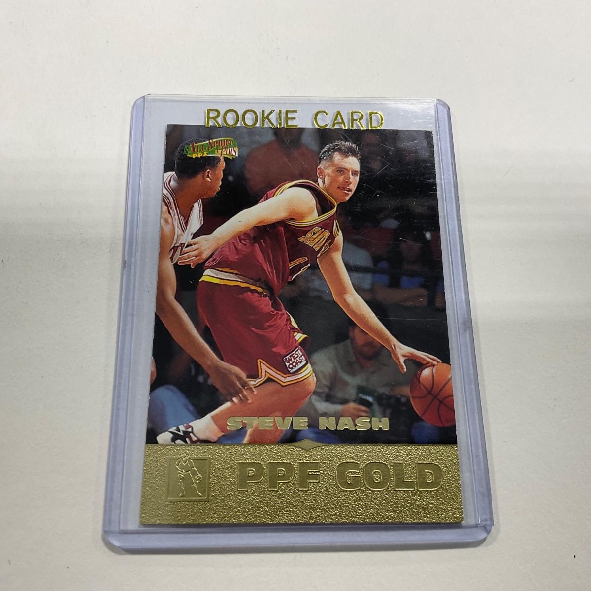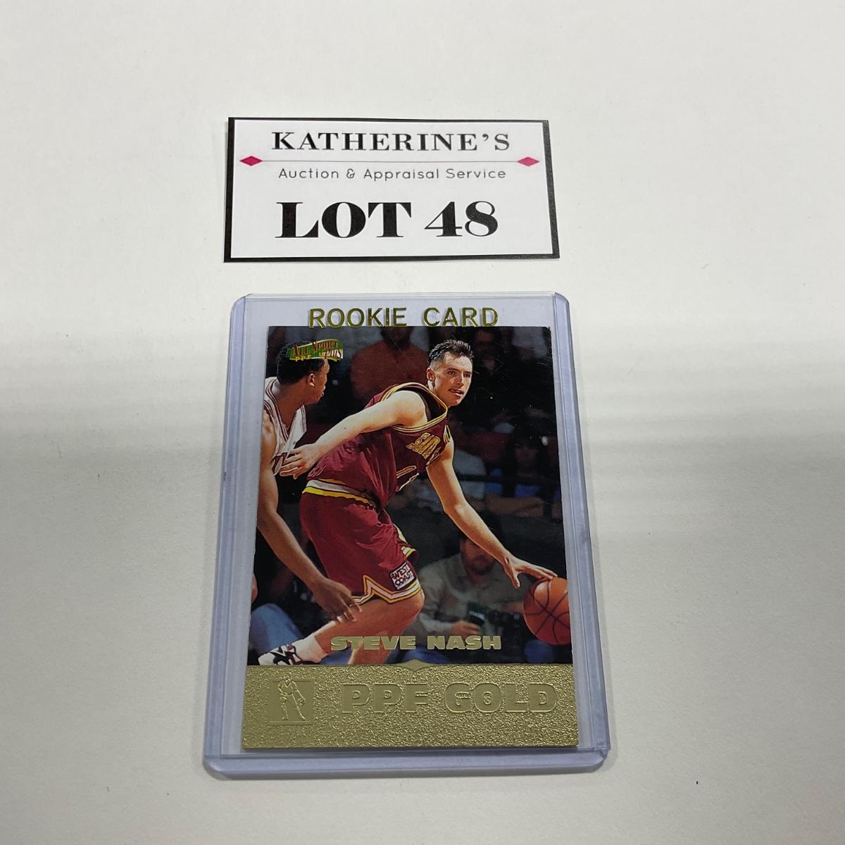 One 1996 The Score Board Inc. Steve Nash card. Please see photos for details and condition. ::: Shipping is available on this lot. If you require shipping you must let us know at the close of the auction. We will coordinate with you after the item has been won. Shipping fees will include insurance up to or exceeding the value of all items being mailed. If you have any questions regarding this lot please contact the auctioneer either via this website, by direct email or by phone. PICK UP TIMES and other important information can be found in the TERMS and DESCRIPTION of the auction. Please take a look for pertinent information. Thanks!
