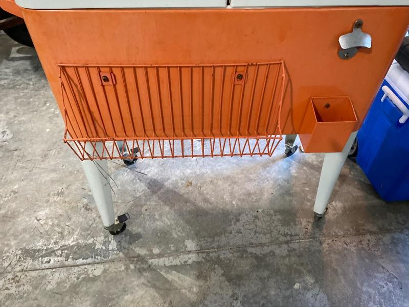 Cold Drinks Cooler, made of steel, outside measures 36” handle to handle x 32.5 “ Tall,