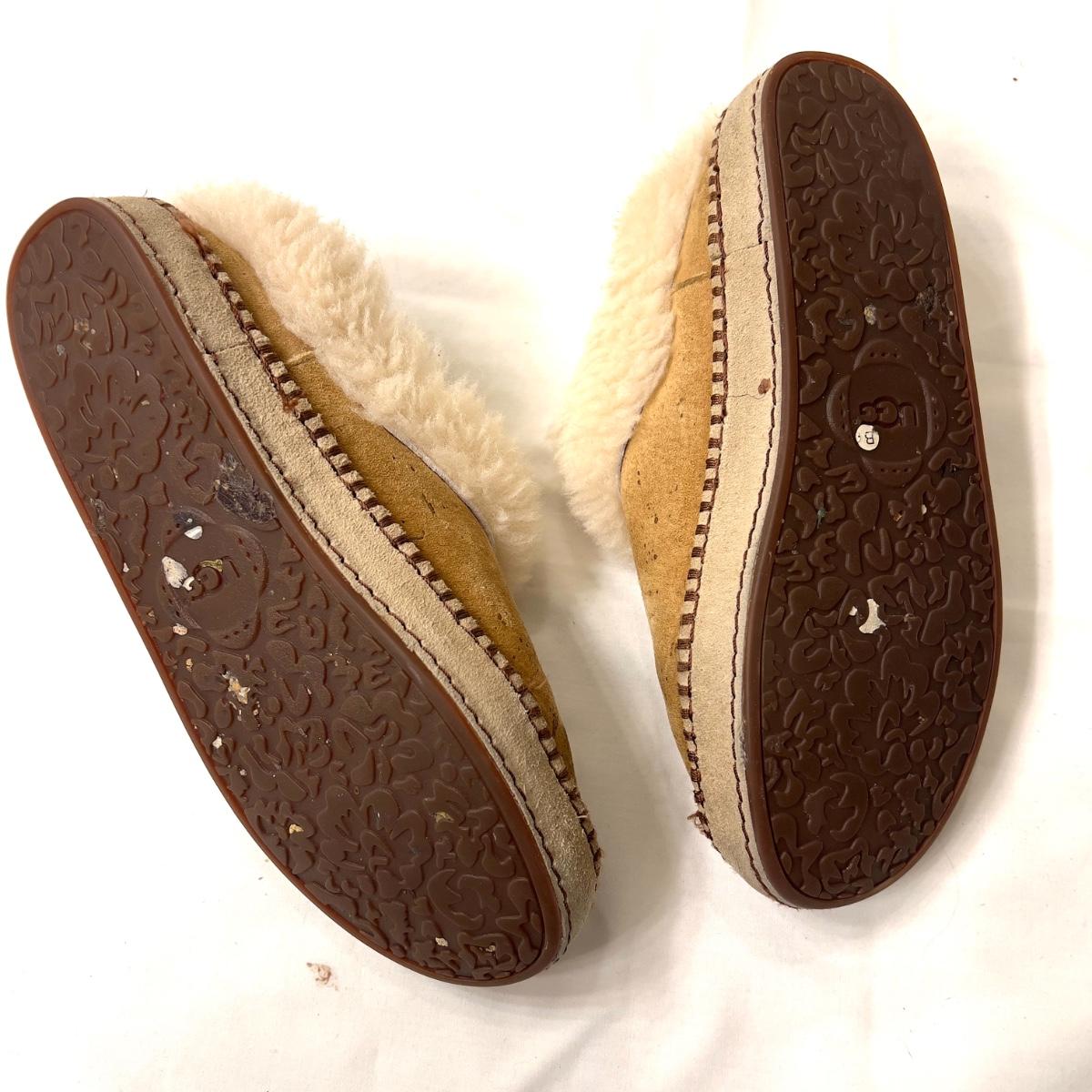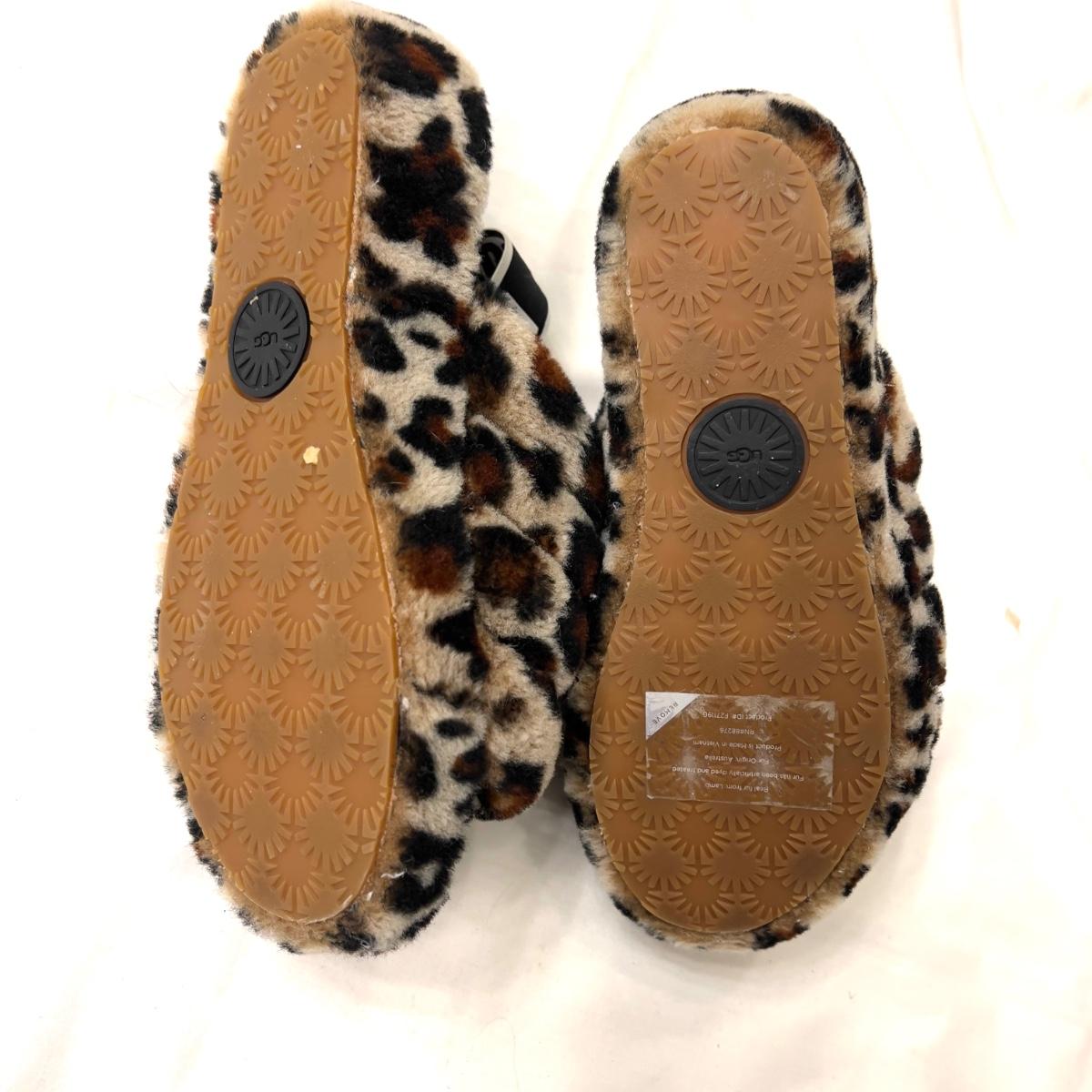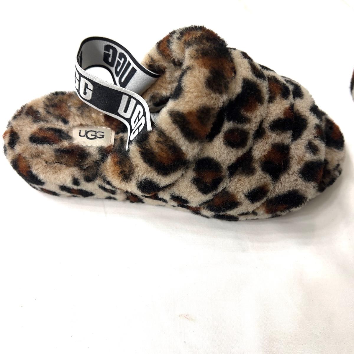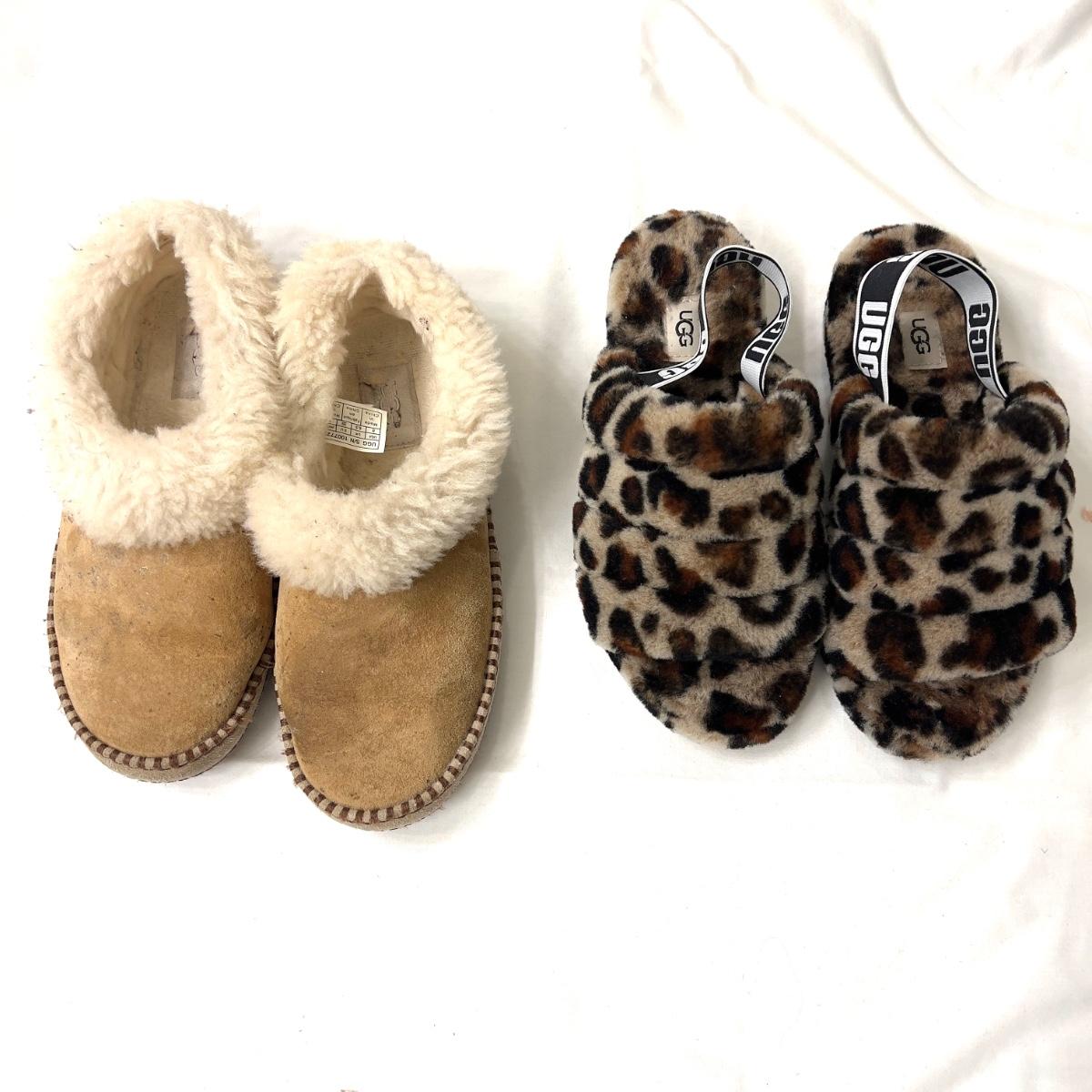 Suede slippers show signs of wear size 8 and Leopard print slippers are size 7
