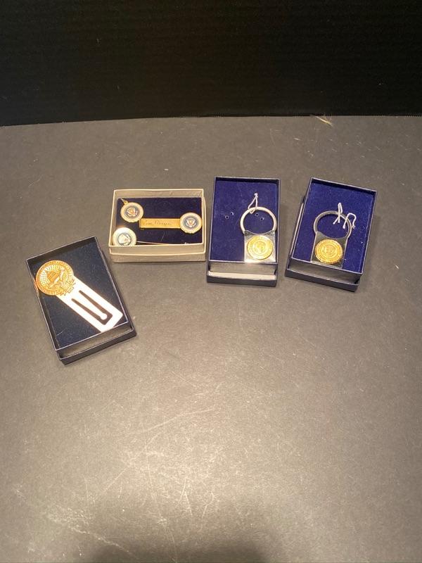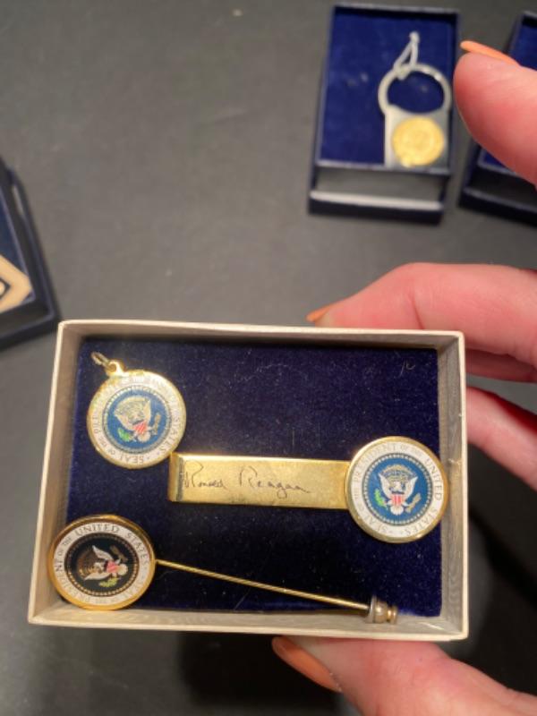 President Ronald Reagan Key Fob, Tie Clip, Charm, Pin, & Bookmark