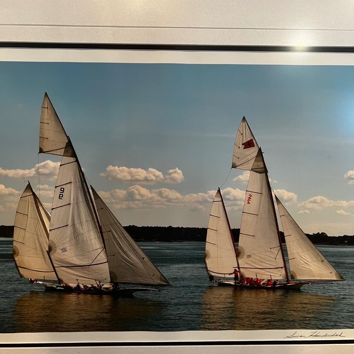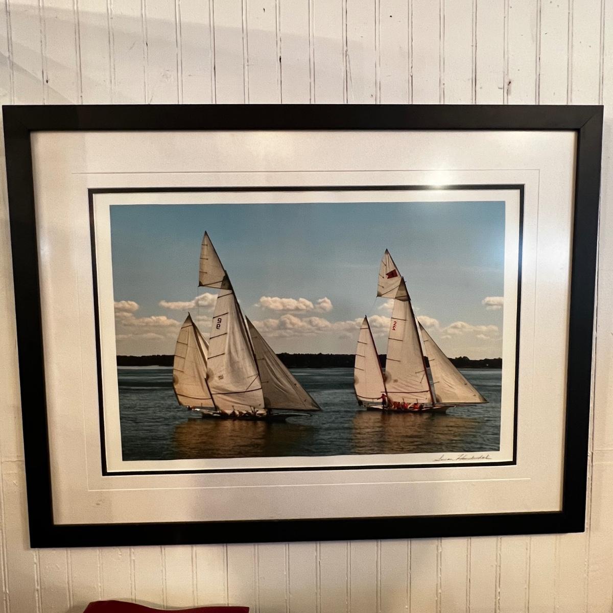 485 Signed Susan Handschuh Log Canoe Race #9 & #2 Framed Photograph