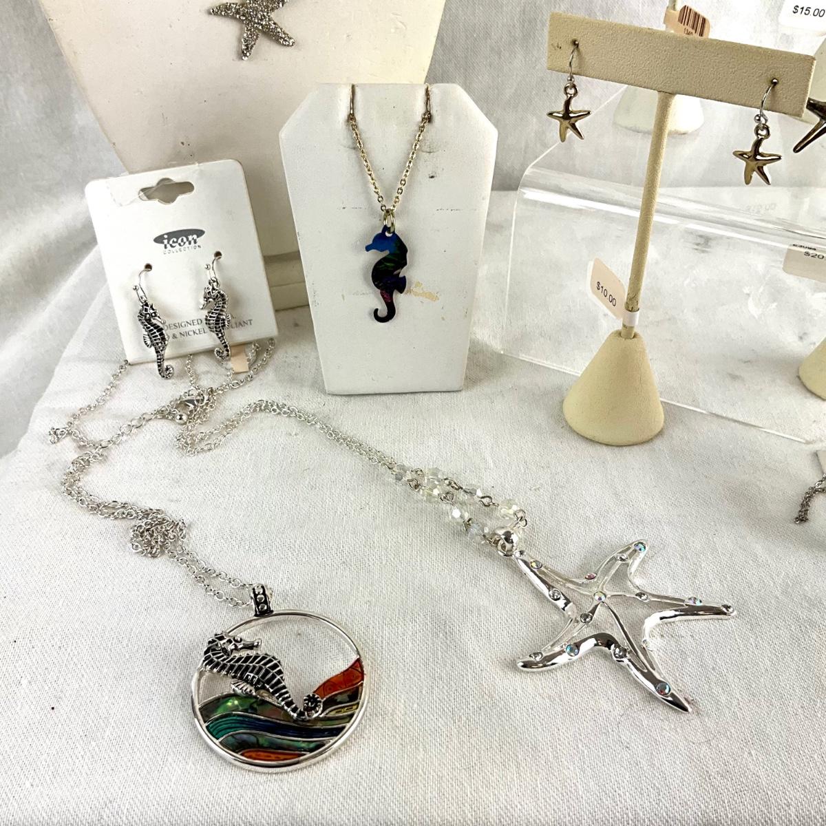 Starfish necklaces and earrings with Seahorse enamel style necklace and earrings