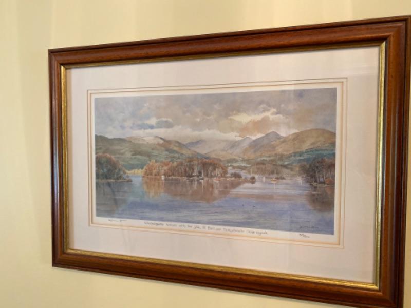 487: Signed English Lithograph by Dremiott “Windermere Holmes at the yolk I;ll bell and thornthwaite crag beyond “ signed on lower right