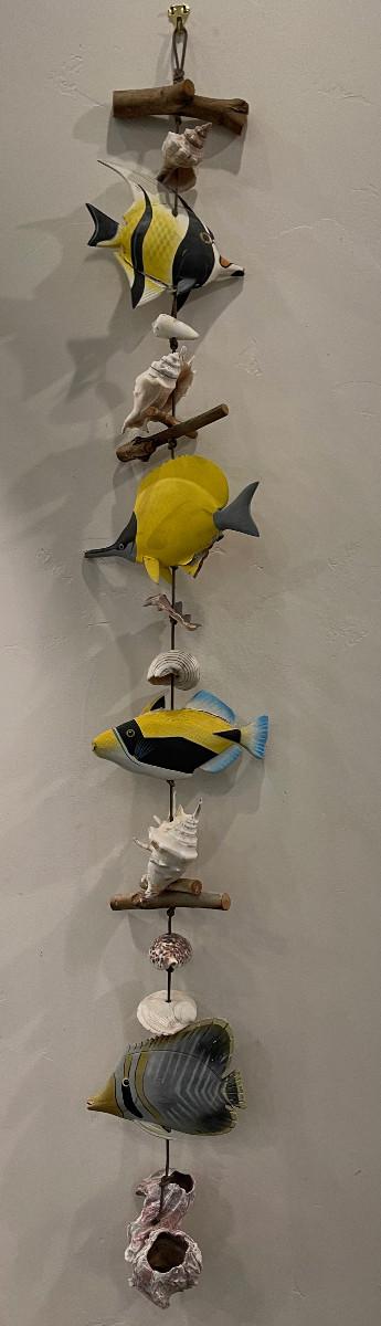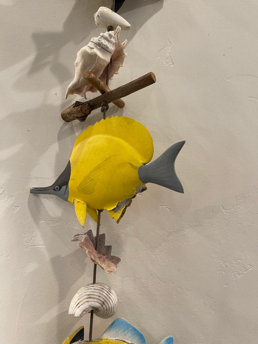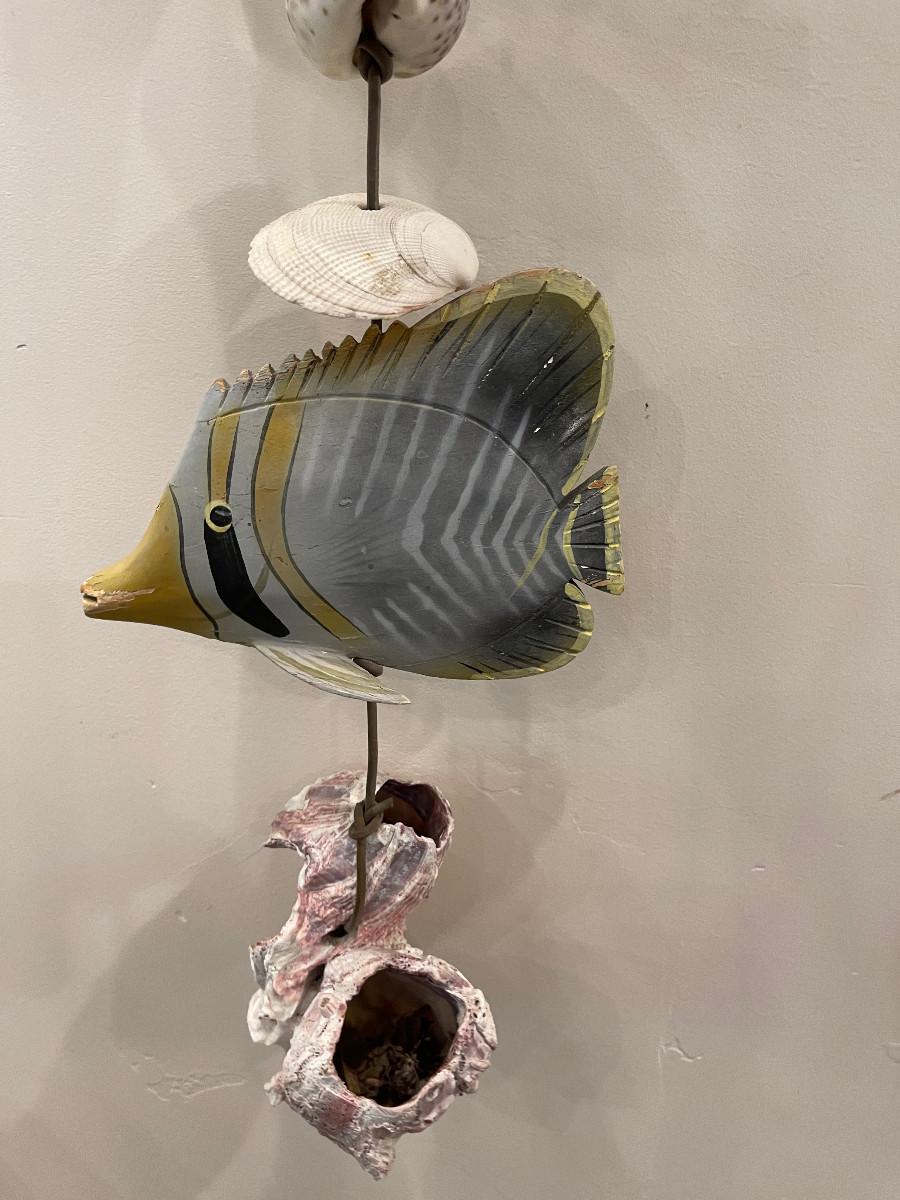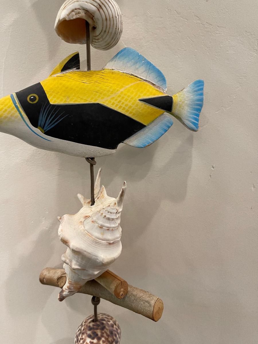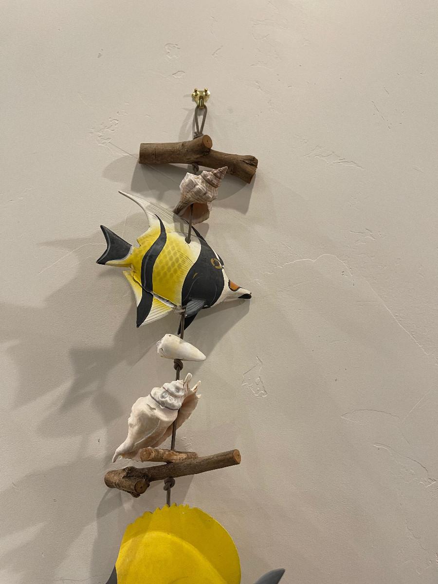 Shells and Wood Carved Fish. Get your Sea Fish on. 50" Long.