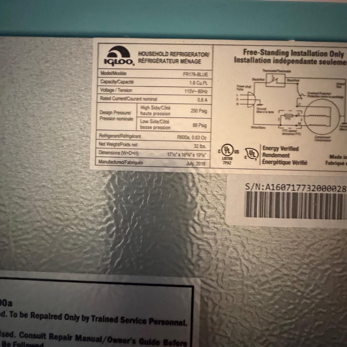 Blue Igloo Retro Mini Fridge w/Freezer Model: FR176