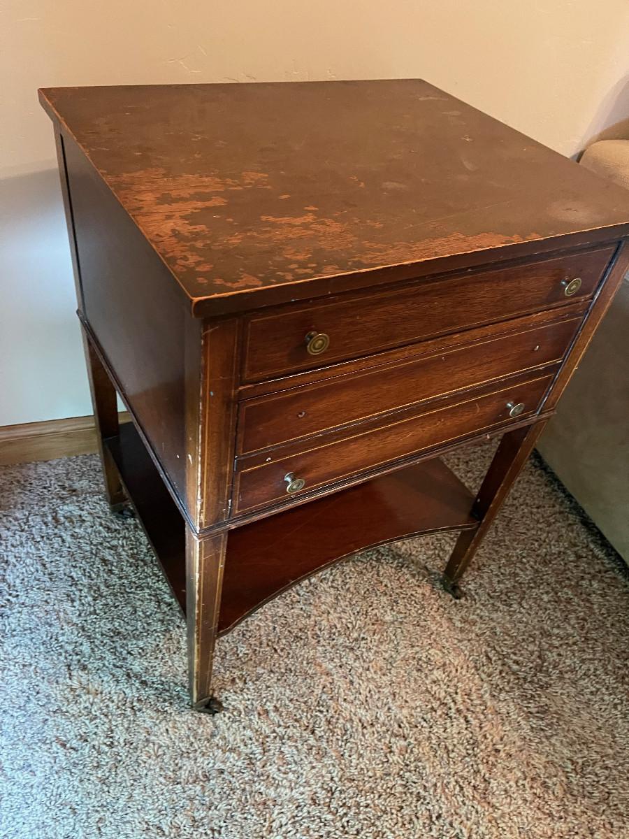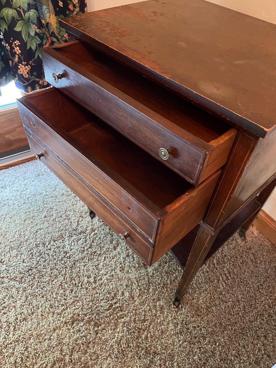 2 drawer but missing 2 knobs on drawer 20" x 17" x 28"
