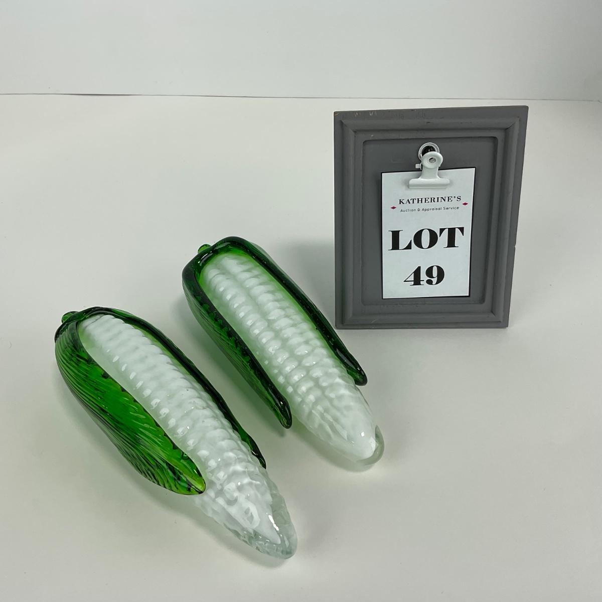 Two vintage art glass white corn figures. This piece has no damage, and appears to be in great shape with no visable chips, cracks, or broken pieces. Please see photos for details and condition. Any condition statement is given as a courtesy to a client, is an opinion, and should not be treated as a statement of fact. Reference to condition written, oral or within a condition report shall not be regarded as a full account of condition and may not include all defects, alterations, or restorations. Absence of a condition report does not imply a lot is flawless or lacking imperfections or damage. Katherine’s Auction & Appraisal Service shall have no responsibility for any error or omission. Returns shall not be accepted on the basis of condition. ::: Shipping is available on this lot. If you require shipping you must let us know at the close of the auction. We will coordinate with you after the item has been won. Shipping fees will include insurance up to or exceeding the value of all items being mailed. If you have any questions regarding this lot please contact the auctioneer either via this website, by direct email or by phone. PICK UP TIMES and other important information can be found in the TERMS and DESCRIPTION of the auction. Please take a look for pertinent information. Thanks!