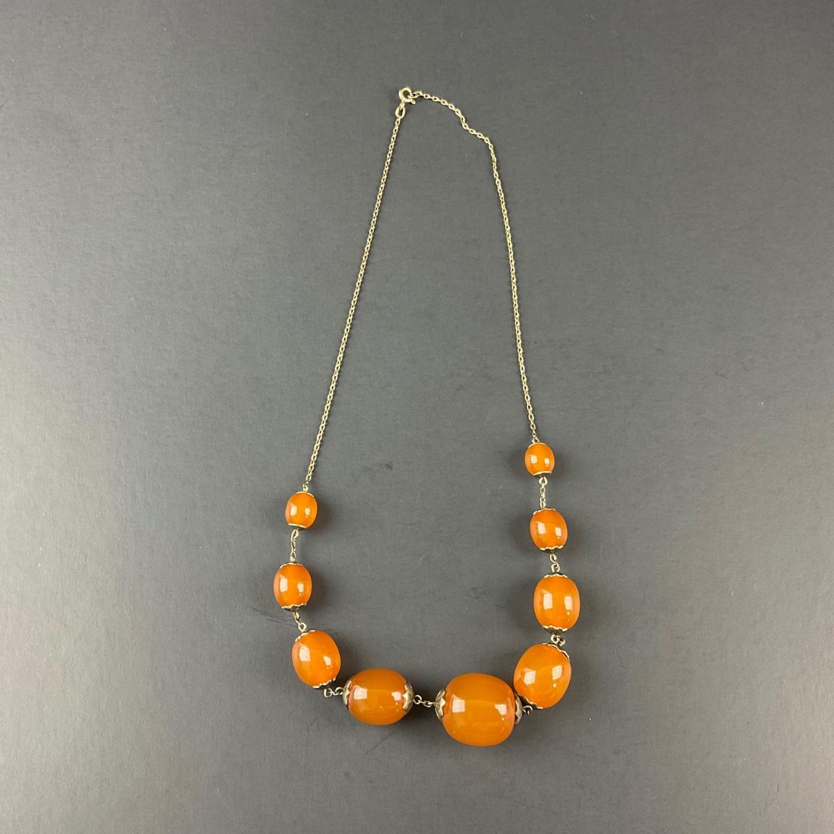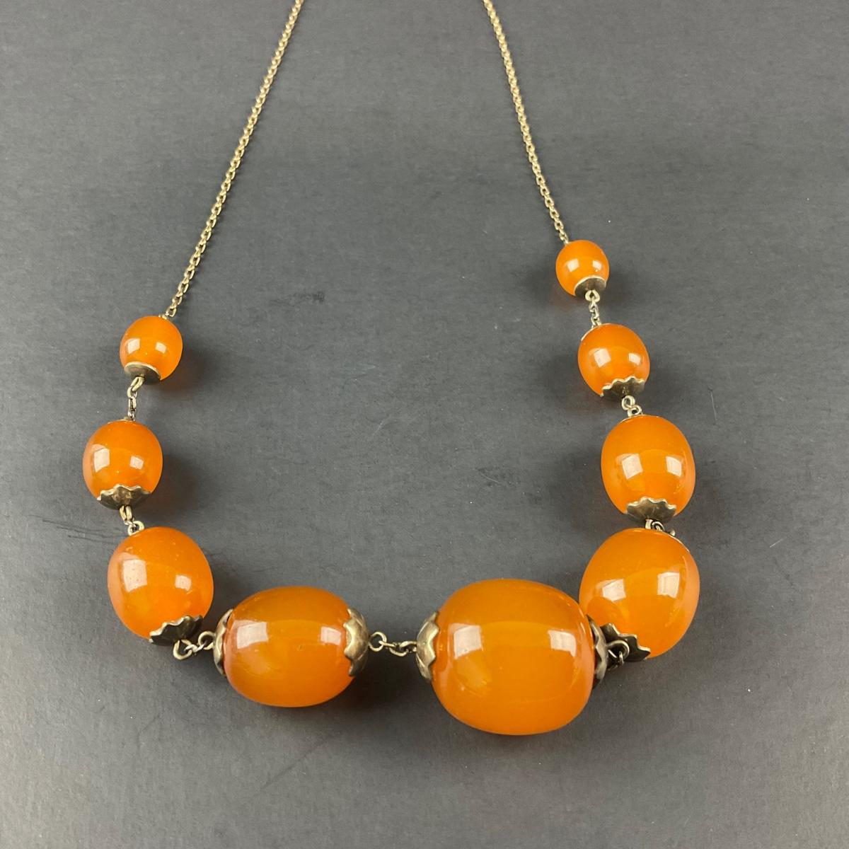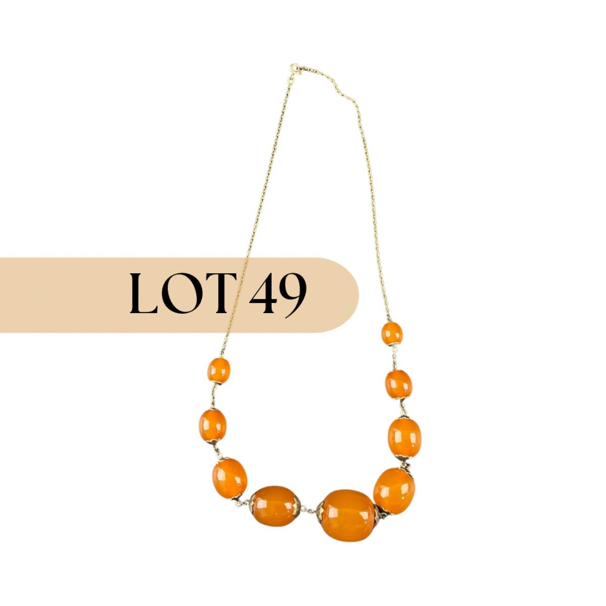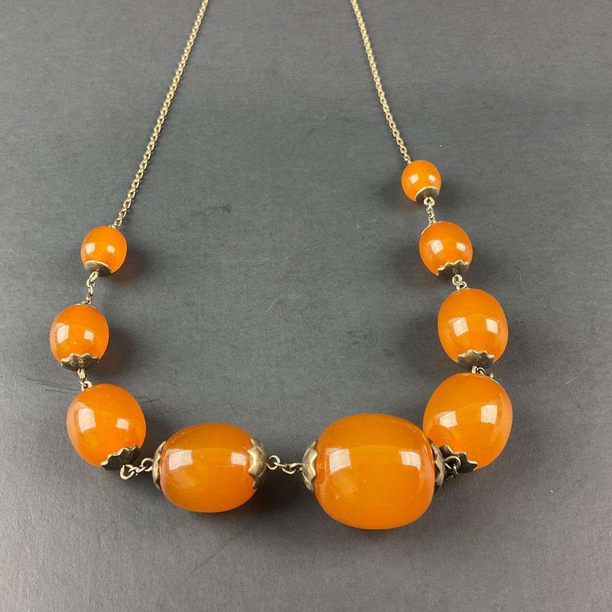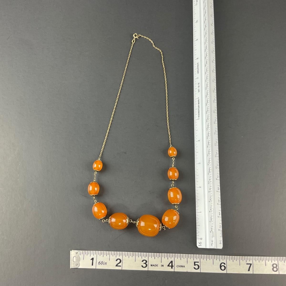 -49- COSTUME | 1940’s Amber Set In Gold Tone Chain