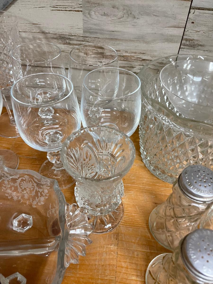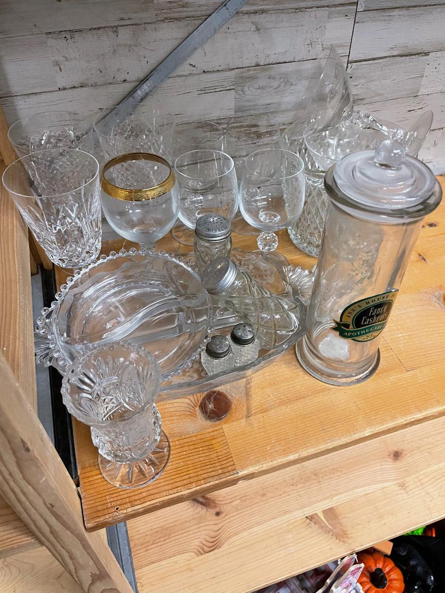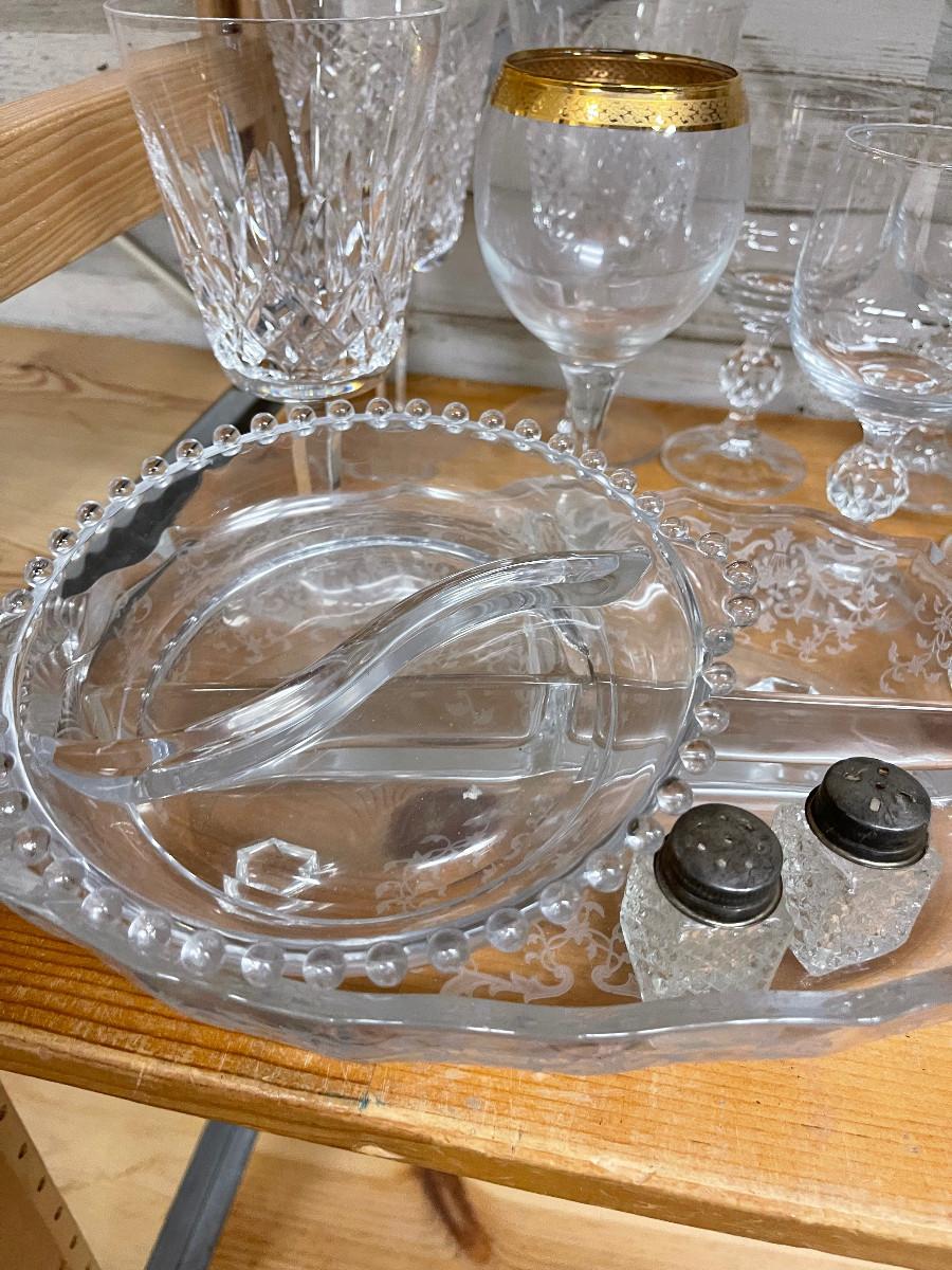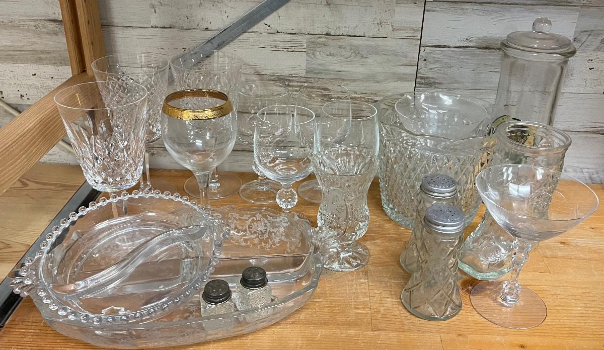 #49  CRYSTAL Clear Glass Lot: Tumblers, Some Waterford too plus S & P