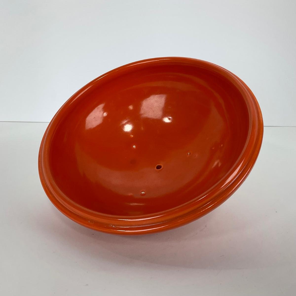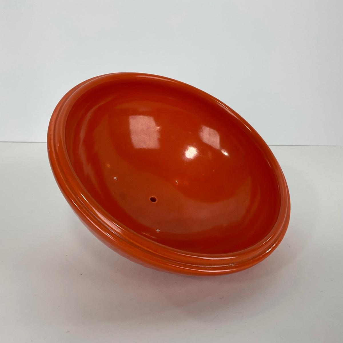 One orange two piece round covered Casserole similar in style and look to Rumrill. Please see photos for details and condition. ::: Shipping is available on this lot. If you require shipping you must let us know at the close of the auction. We will coordinate with you after the item has been won. Shipping fees will include insurance up to or exceeding the value of all items being mailed. If you have any questions regarding this lot please contact the auctioneer either via this website, by direct email or by phone. PICK UP TIMES and other important information can be found in the TERMS and DESCRIPTION of the auction. Please take a look for pertinent information. Thanks!