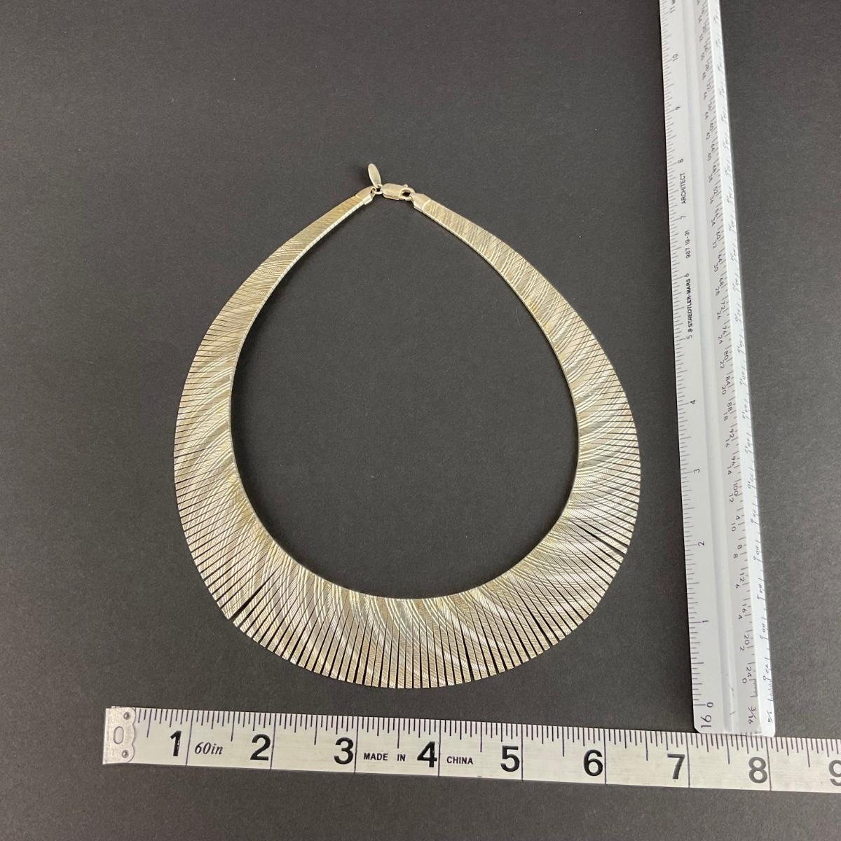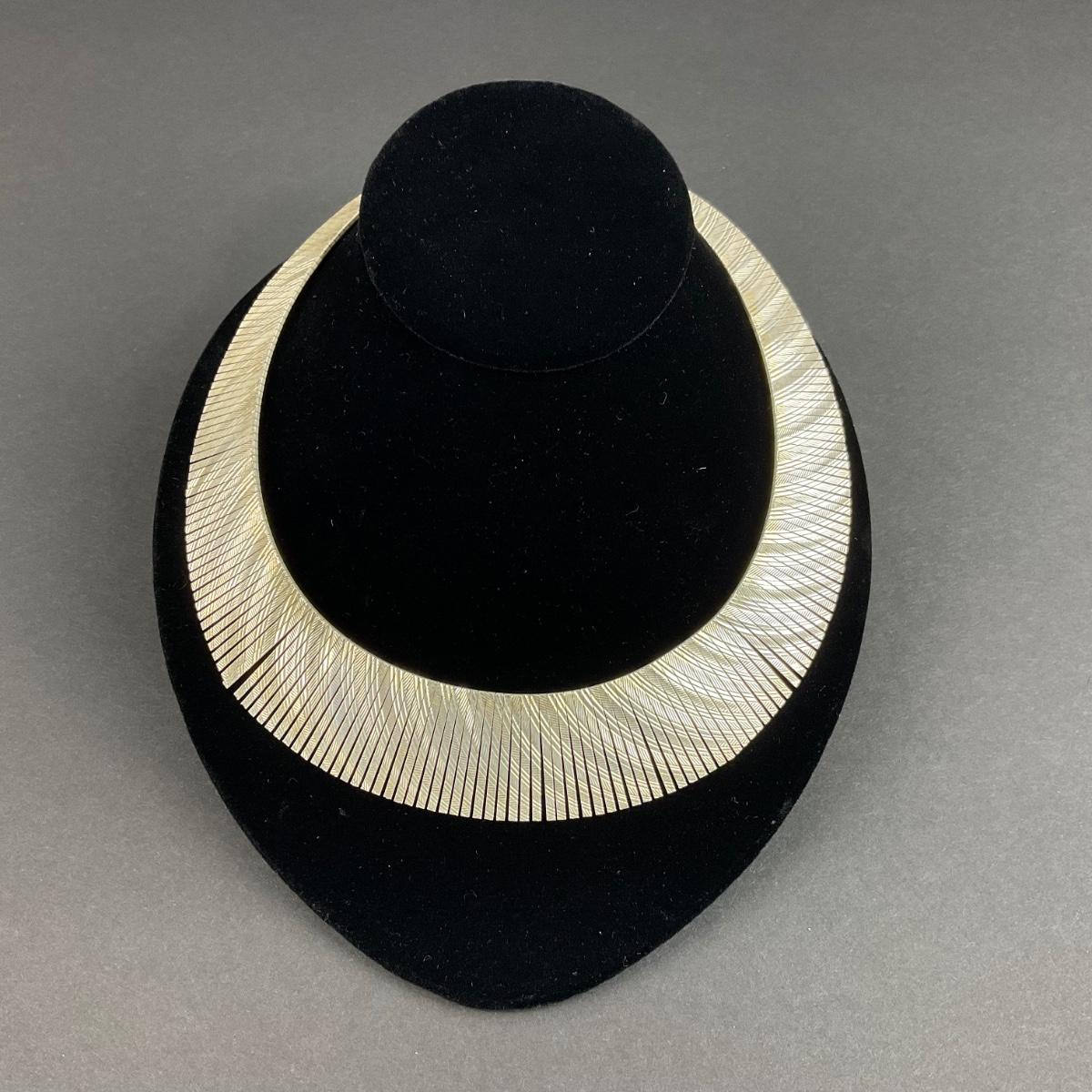 one vintage Dvadema Italy silver plated bronze necklace. Please see photos for details and condition. Any condition statement is given as a courtesy to a client, is an opinion, and should not be treated as a statement of fact. Reference to condition written, oral or within a condition report shall not be regarded as a full account of condition and may not include all defects, alterations, or restorations. Absence of a condition report does not imply a lot is flawless or lacking imperfections or damage. Katherine’s Auction & Appraisal Service shall have no responsibility for any error or omission. Returns shall not be accepted on the basis of condition. ::: Shipping is available on this lot. If you require shipping you must let us know at the close of the auction. We will coordinate with you after the item has been won. Shipping fees will include insurance up to or exceeding the value of all items being mailed. If you have any questions regarding this lot please contact the auctioneer either via this website, by direct email or by phone. PICK UP TIMES and other important information can be found in the TERMS and DESCRIPTION of the auction. Please take a look for pertinent information. Thanks!