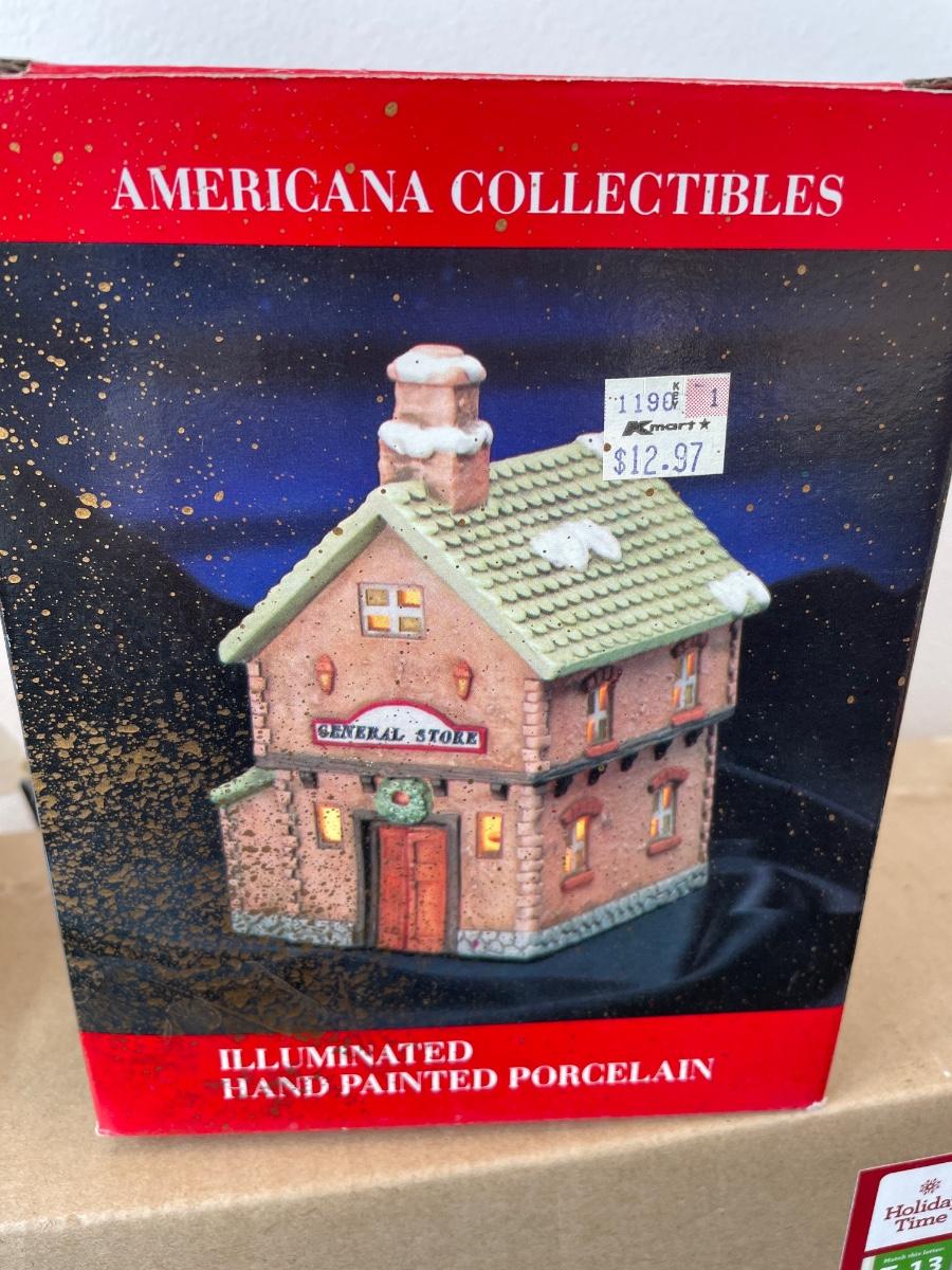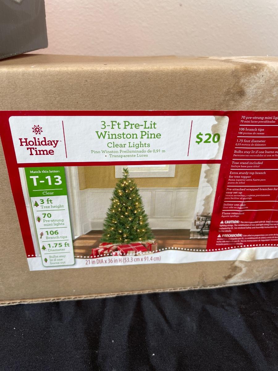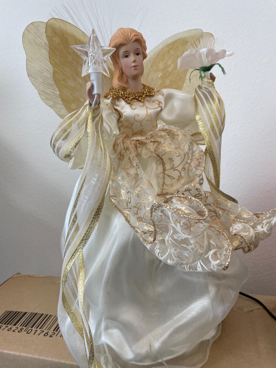 49- Fiber optic angel tree topper, 3’ tree & village house