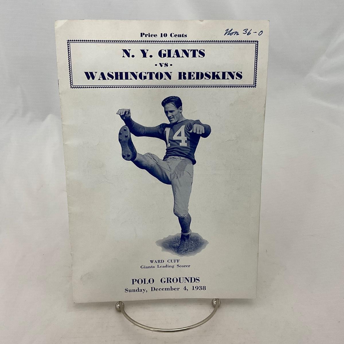 -49- FOOTBALL | 1938 New York Giants Vs Washington Redskins Program