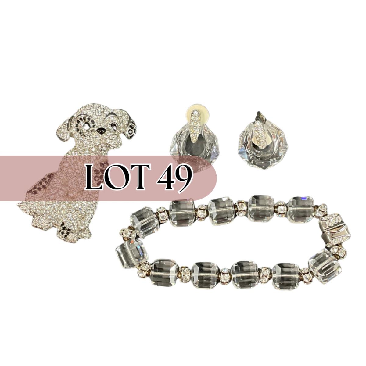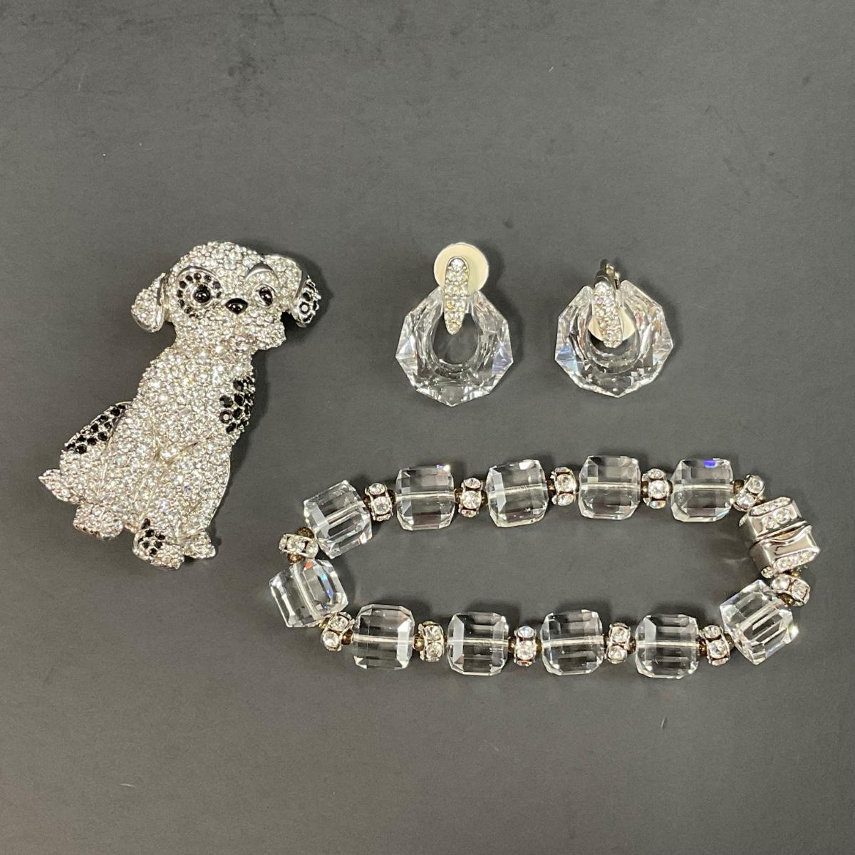 Assorted Swarovski pieces including one Dalmatian brooch, and Cube Crystal bracelet and clip earrings. This piece does have some scuffs, scratches, marks, or slight damage, but otherwise appears to be in great shape. Please see photos for details and condition. Any condition statement is given as a courtesy to a client, is an opinion, and should not be treated as a statement of fact. Reference to condition written, oral or within a condition report shall not be regarded as a full account of condition and may not include all defects, alterations, or restorations. Absence of a condition report does not imply a lot is flawless or lacking imperfections or damage. Katherine’s Auction & Appraisal Service shall have no responsibility for any error or omission. Returns shall not be accepted on the basis of condition. ::: Shipping is available on this lot. If you require shipping you must let us know at the close of the auction. We will coordinate with you after the item has been won. Shipping fees will include insurance up to or exceeding the value of all items being mailed. If you have any questions regarding this lot please contact the auctioneer either via this website, by direct email or by phone. PICK UP TIMES and other important information can be found in the TERMS and DESCRIPTION of the auction. Please take a look for pertinent information. Thanks!