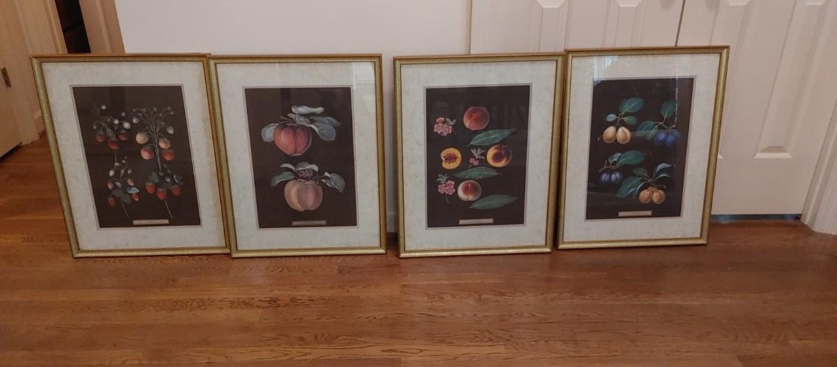 #49 Set of (4) George Brookshaw Botanical Fruit Prints are framed and matted and are absolutely gorgeous.