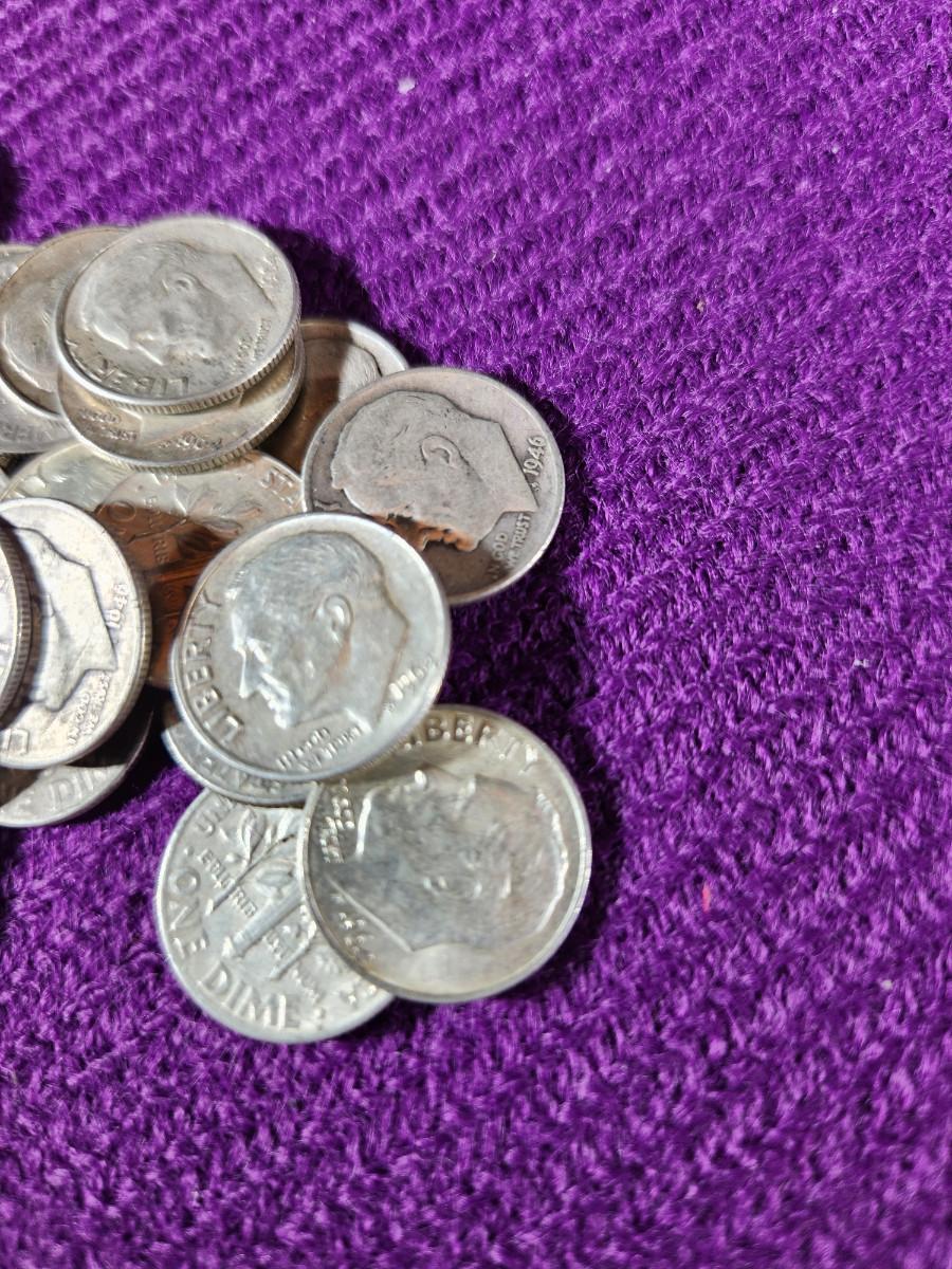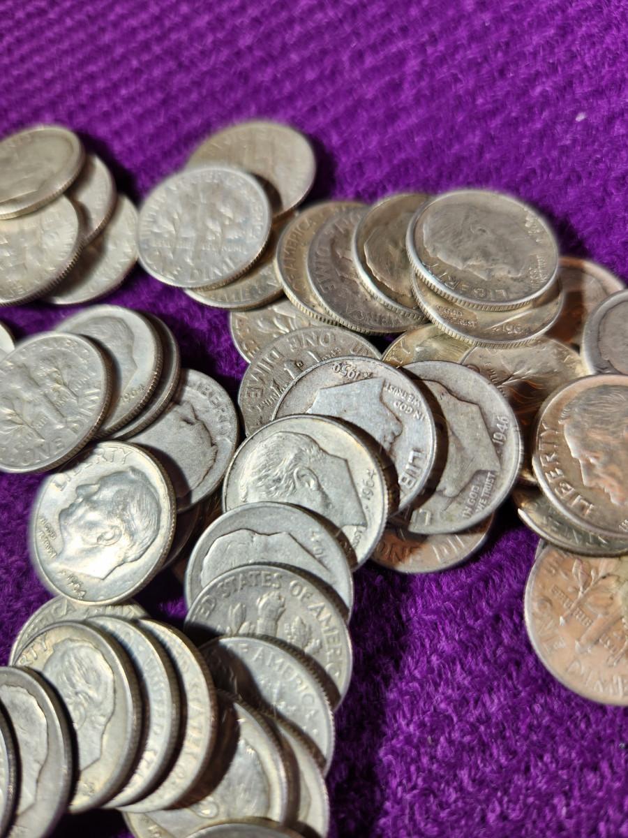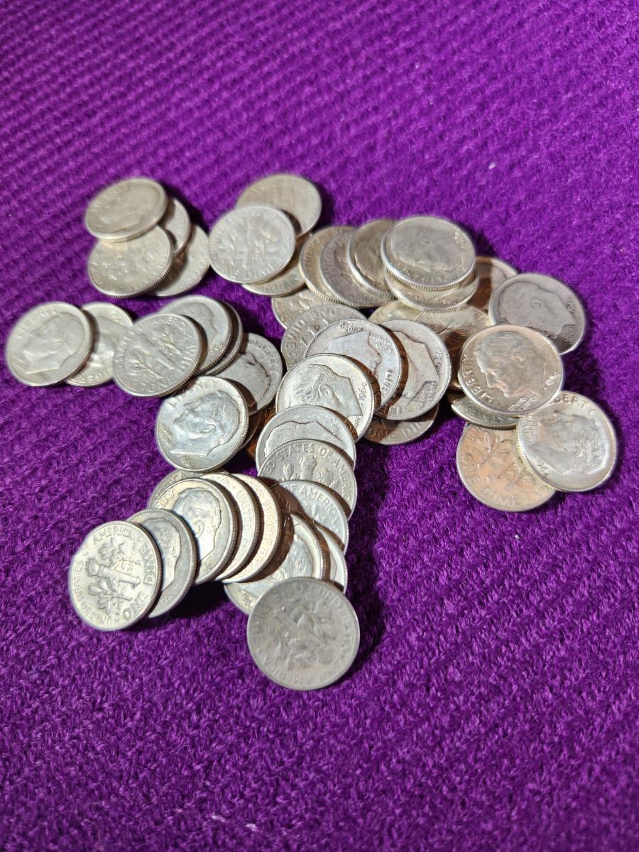 This auction lot is for a grouping of 49 Silver US Mint Dimes. All the coins in this lot are pre 1965 and are 90% silver.