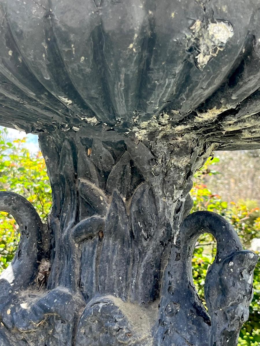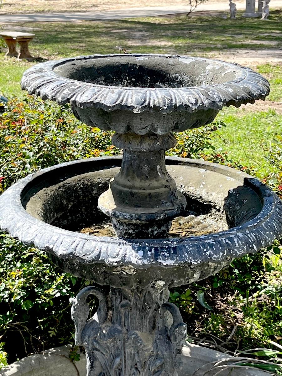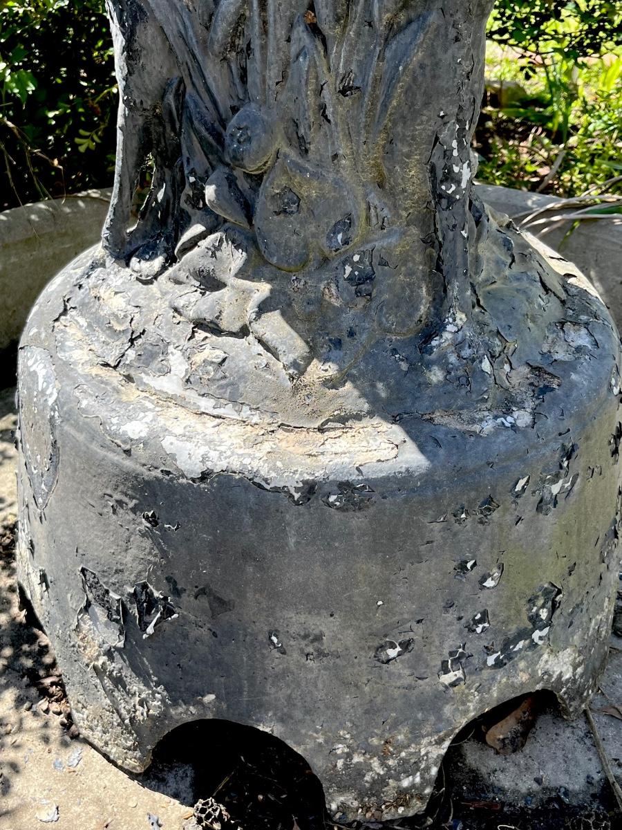 49” H x 27” Round ~ This is not cast iron, it appears to be cast aluminum ~ It is very heavy and appears to be only one piece ~ Cement base not included ~ see photos for condition