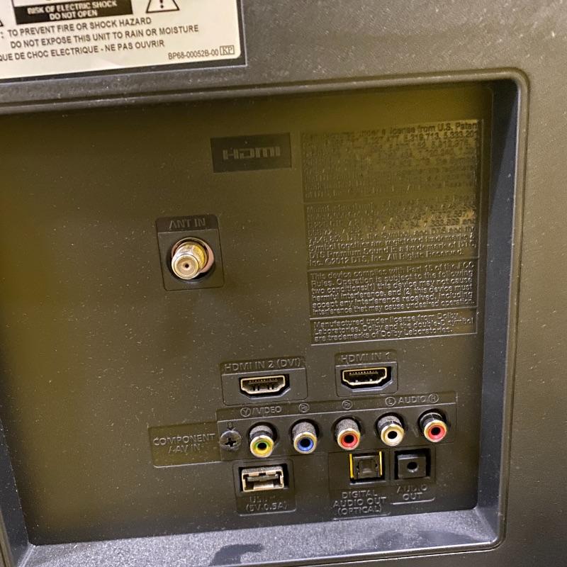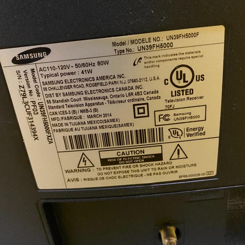 38.5” Samsung TV. Stand is separate but can easily be attached. See pix for model number. Unable to test if it is working.