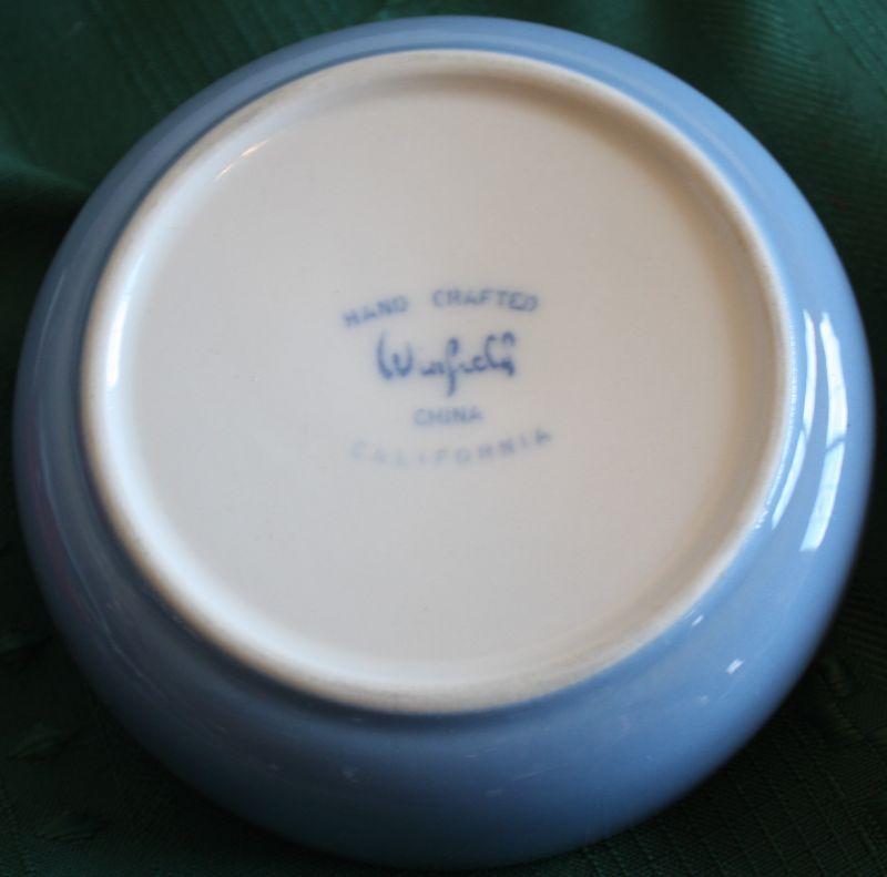 12 pieces of Winfield China Hand Crafted from California, Blue Pacific pattern; Double serving bowl, 4- 7.5 plates, 2- 4.75 bowls, 2- coffee cups, 3- coffee mugs