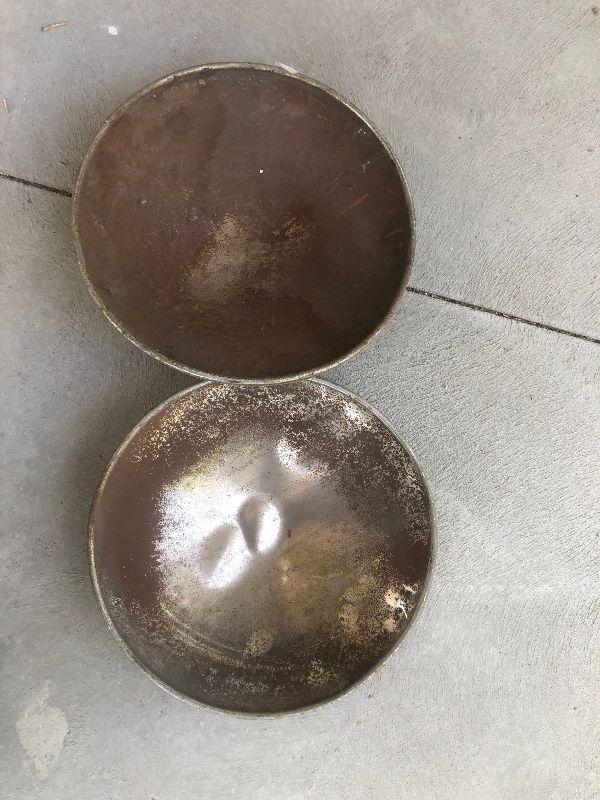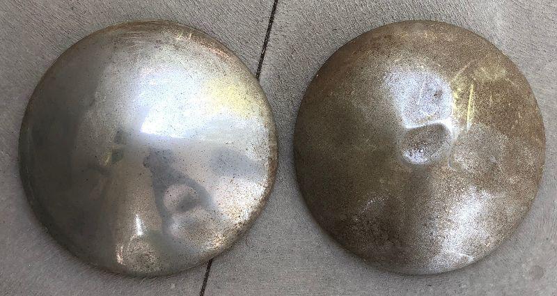 #491 2 Chrome Dented Rusty Hubcaps